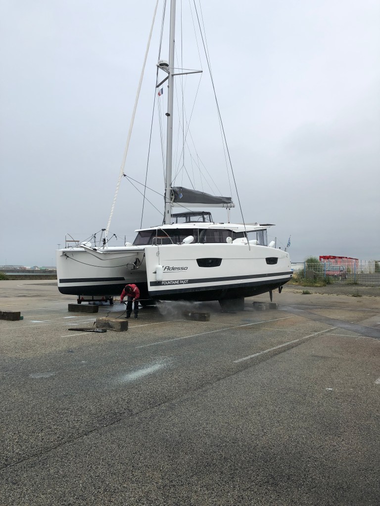 Größtenteils war ich in dieser Phase auf mich alleine gestellt. Raymonde musste ja noch arbeiten. Doch so schnell es ihr möglich war, ist sie mit dem TGV nach La Rochelle gebraust gekommen um mich doch noch ein klein wenig zu entlasten. Der Plan war: Sobald die Arbeiten abgeschlossen sind, werde ich mich mit dem Boot alleine auf den Weg machen, und Raymonde solle dann mit meinem Auto zurück nach Luxemburg fahren. Ich muss zugeben, es war ein anspruchsvoller Plan; alleine mit einem neuem Katamaran die 740 Seemeilen nach Holland zu segeln. Aber in dieser Zeit, in der Niemand wusste wie es weitergehen soll war es für uns die einzigste Option.