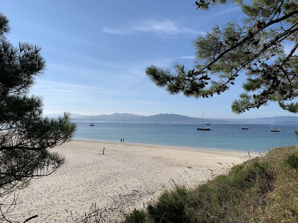 Am Montag ging es dann weiter Richtung Süden, in den letzten der spanischen Ria’s vor der portugiesischen Grenze, in den Ria de Vigo. Hier ankerten wir vor dem wunderschönen Strand Praia de Barra in türkisem Wasser umringt von Pinienhängen. Herrlich schön.
