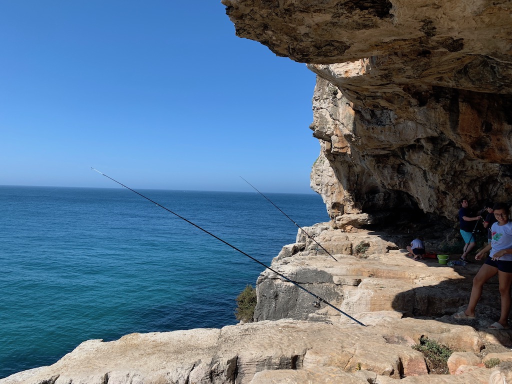 Am kommenden Tag ging es dann weiter nach Peniche. Hier ankerten wir vor dem Strand rechts vom Hafen. Der Hafen war komplett voll, für uns war da kein Platz mehr. Aber dies war auch nicht schlimm, denn auch hier rasten den ganzen Tag die Fischer rein und raus und schwellfrei war der Hafen auch nicht. Trotz des Windes lagen wir ruhiger draussen vor Anker. Peniche hat eine grössere Durchgangsstrasse mit Restaurants auf beiden Seiten und es war gerade Kirmes. Durch den Ort waren wir schnell durch und so beschlossen wir bis zum Cabo Carvoeiro zu spazieren. Von hier aus hatten wir schöne Ausblicke auf das Meer und entdeckten viele versteckte Felsvorsprünge die den Fischern bestimmt schon jahrzehntelang als Anglerplätze dienten.