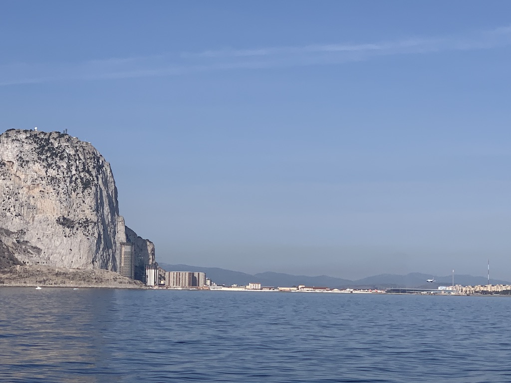 Vor einer Woche ungefähr sind wir Richtung Estepona gestartet. Nach zwei Tagen Gibraltar wollten wir weiter. Hier noch ein letztes Foto vom „Rock“ und derjenige der sehr gut hinschaut, bemerkt das Flugzeug rechts im Bild, das gerade am Landeanflug ist. Die Flugzeuge sind vor dem Rock schon sehr tief, weil die Landebahn sofort dahinter beginnt und diese maximal ausgenutzt werden muss. Schon beeindruckend…