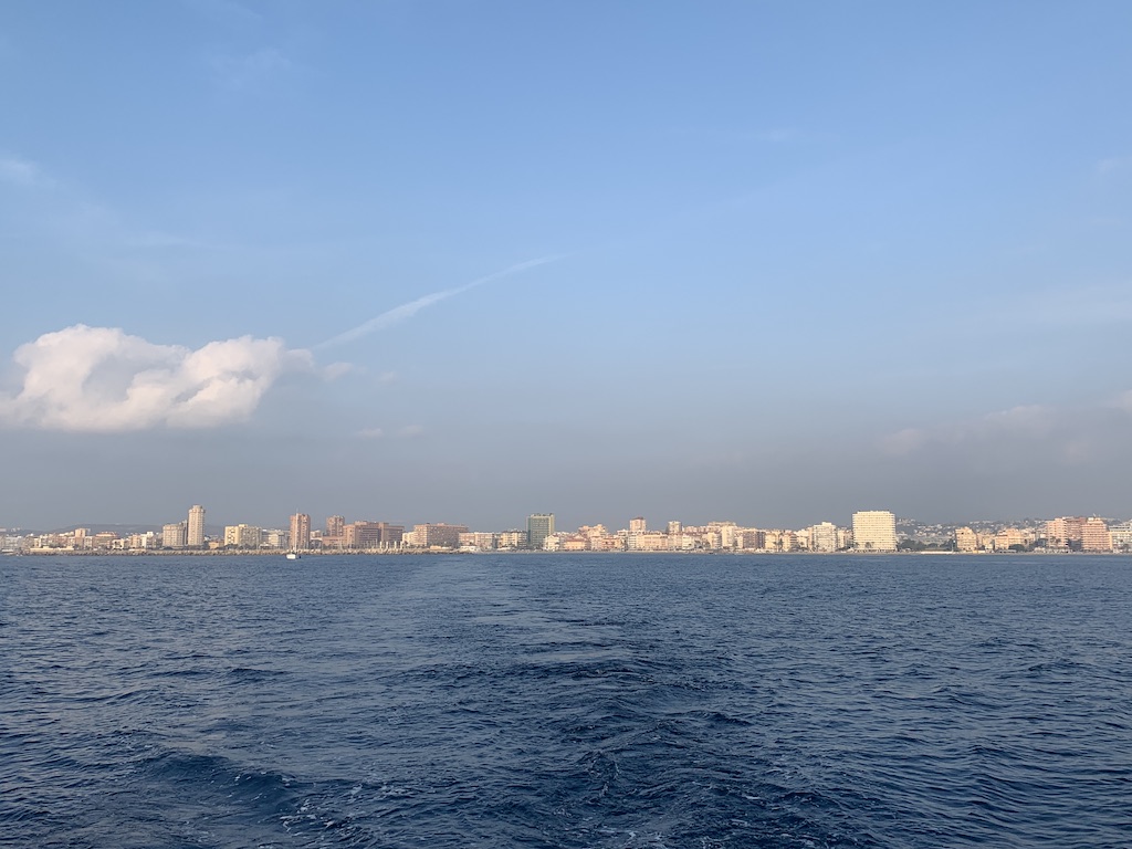 Der Hafen bot uns Schutz vor den Wellen aus Ost, es gab viele, sehr viele Restaurants und Bars, an fast jeder Ecke einen Minimercado, soweit das Auge reichte riesige Wohnanlagen wo tausende Sonnensuchende untergebracht werden können…Wir wollen uns gar nicht ausmalen wie es hier in der Hochsaison aussehen muss. Denn noch jetzt, Ende September waren die Strände und Terrassen gut besucht und die Strandpromenade voller Leute. Uns gefallen diese Touristenhochburgen einfach nicht. Es war wirklich wieder an der Zeit in einer ruhigen Bucht zu ankern. So machten wir uns früh morgens auf den Weg für einen längeren Schlag an Benalmadena, Malaga usw. vorbei zur Cala de los Cañuelos vor Almuñécar. Hier noch ein letzter Ausblick auf die verbaute Küste: