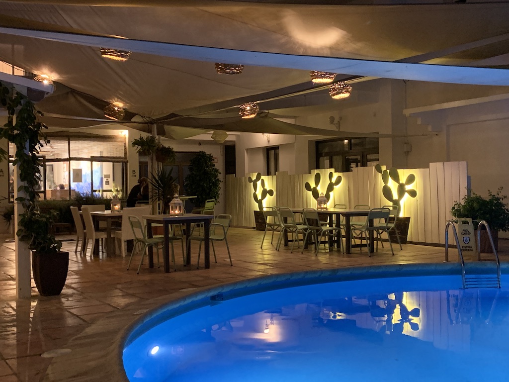 Zurück auf Adesso sind wir weiter nördlich, am Hafen von Savina entlang, bis zur Beso Beach Bucht gefahren. Hier haben wir den Rest des Tages vor Anker verbracht, haben ein bischen Schlaf nachgeholt und einen kurzen Erkundungstrip durch den Hafen von Savina gemacht. Kurz vor Sonnenuntergang entschlossen wir uns, den Ankerplatz aber noch einmal zu wechseln, denn die Fähren, die zwischen Ibiza und Formentera unaufhörlich hin- und herbrausten, verursachten so starke Wellen, dass die hier ankernden Schiffe jedesmal wild hin und her geworfen wurden. Auf dem Hinweg, hatten wir ein Bojenfeld gesichtet, das in einer gut geschützen Bucht lag, nicht weit weg. Hier angekommen schnappten wir uns eine Boje und genossen die neu gewonnene Ruhe. Kein Wackeln mehr! 🙂 Normalerweise sind solche Bojen kostenpflichtig und es dauert nicht lange, bis jemand einkassieren kommt, aber bis heute, zwei Tage danach, ist noch niemand erschienen, so dass wir mitlerweile der Meinung sind, dass im Oktober die Bojen gratis sind und nur in der Hochsaison abkassiert wird…keine Ahnung. Im Moment sind wir ganz zufrieden hier, denn Adesso liegt ruhig und wir sind trotzdem nicht weit von der Ortschaft entfernt. Gestern abend waren wir mit dem Beiboot rübergefahren und haben eine super lecker schmeckende Pizza in einem sehr stilvollen Restaurant, dem Cafe del Lago genossen.