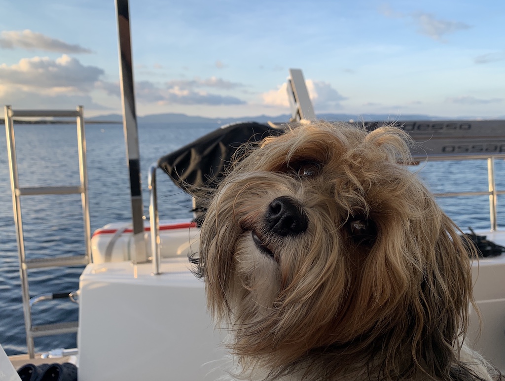 Leider ist das Leben an Bord aber sehr sehr wetterabhängig und das wurde uns bald sehr deutlich vor Augen geführt. Die Nacht war noch verhältnismässig ok, es fing so langsam an mit Regnen und der Wind nahm stätig zu. Das war auch keine Überraschung, wir wussten, dass Freitag und Samstag eine Schlechtwetterphase kommen würde mit viel Wind und Regen. So profitierte ich am Freitag morgen noch schnell davon, dass es nur mässig regnete und ich noch gegen den Wind anpaddelen konnte, um mit Chico mit dem SUP zum Strand zu fahren. Obwohl wir beide doch ziemlich nass waren, genossen wir trotzdem diesen Spaziergang, so ganz alleine am Strand und zwischen den super frisch duftenden Pinienbäumen. Zurück auf Adesso, trocknete ich Chico erstmal ausgiebig ab und verschwand anschliessend in einer warmen Dusche bevor ich uns das Frühstück machte. Bis jetzt noch alles ok…