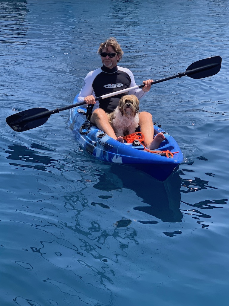 Morgens, wenn ich mit Chico mit dem SUP zum Strand paddelte herrschte so eine wunderbare Stille. Einige machten schon ein paar Yogaübungen am Bug ihres Bootes, aber den Strand hatte ich morgens noch für mich und Chico ganz alleine. Hier konnte sich Chico ungestört austoben, frei rumlaufen und mit seinem Ball spielen…einfach richtig toll. Ich genoss diesen Morgenspaziergang wirklich jeden Tag! Aber da bekanntlich Bilder mehr als 1000 Worte sagen, hier ein paar herrliche Fotos.