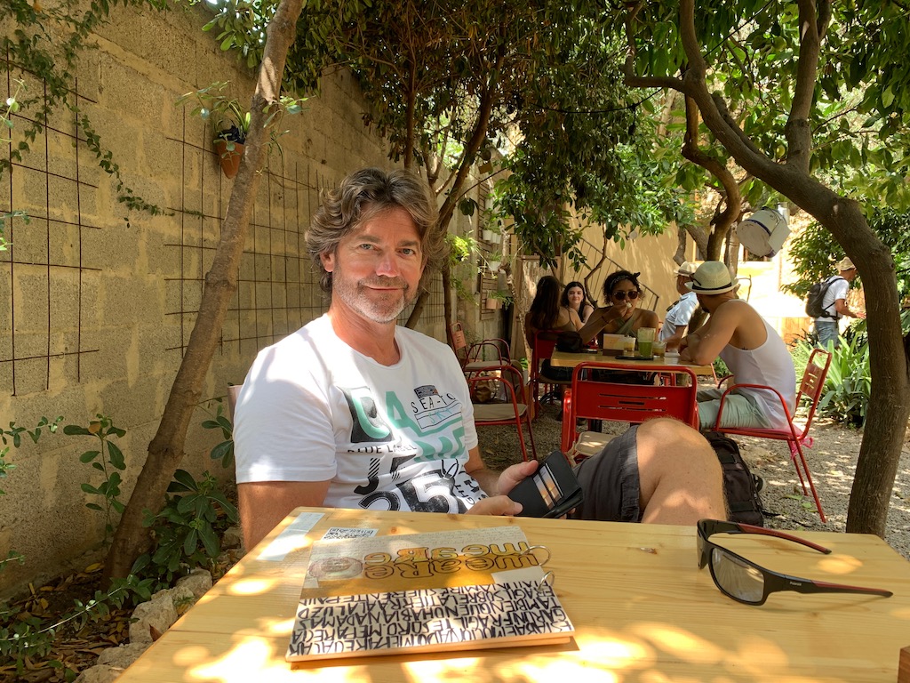 In einer Seitenstrasse haben wir ein sehr spezielles Café-Kunstgalerie-Restaurant entdeckt, mit einem begrünten Hinterhof, eine Oase der Ruhe. Hier genossen wir im Schatten, bei einer leichten kühlen Brise, einen leckeren Käsekuchen und frisch gepressten Obstsaft. Genau passend ;-).