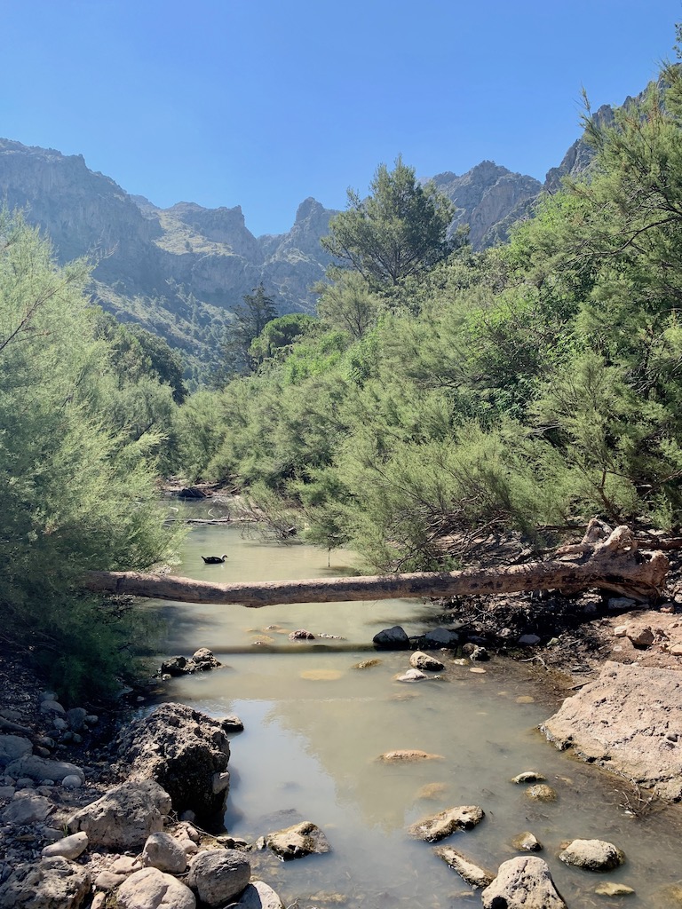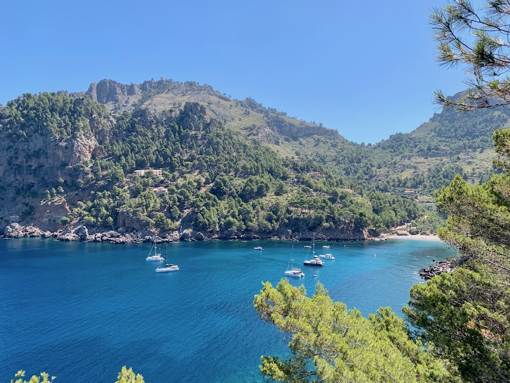 Da die nächsten zwei Tage nur sehr wenig Wind vorausgesagt ist, sind wir heute morgen bis in die Bucht Cala Tuent gefahren. Dies ist eine sehr schöne naturbelassene Bucht, eingebettet zwischen Pinienhängen mit Sicht auf das impressionante Tramuntana Gebirge. Hier ein paar schöne Eindrücke von meiner kleinen Wanderung heute morgen.