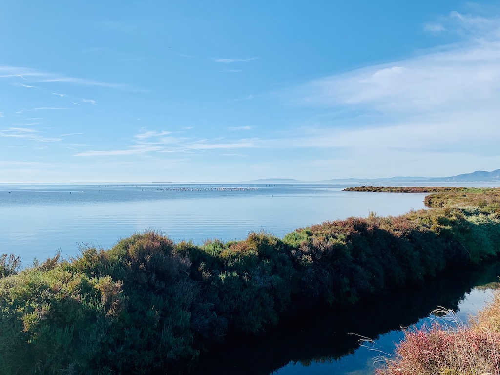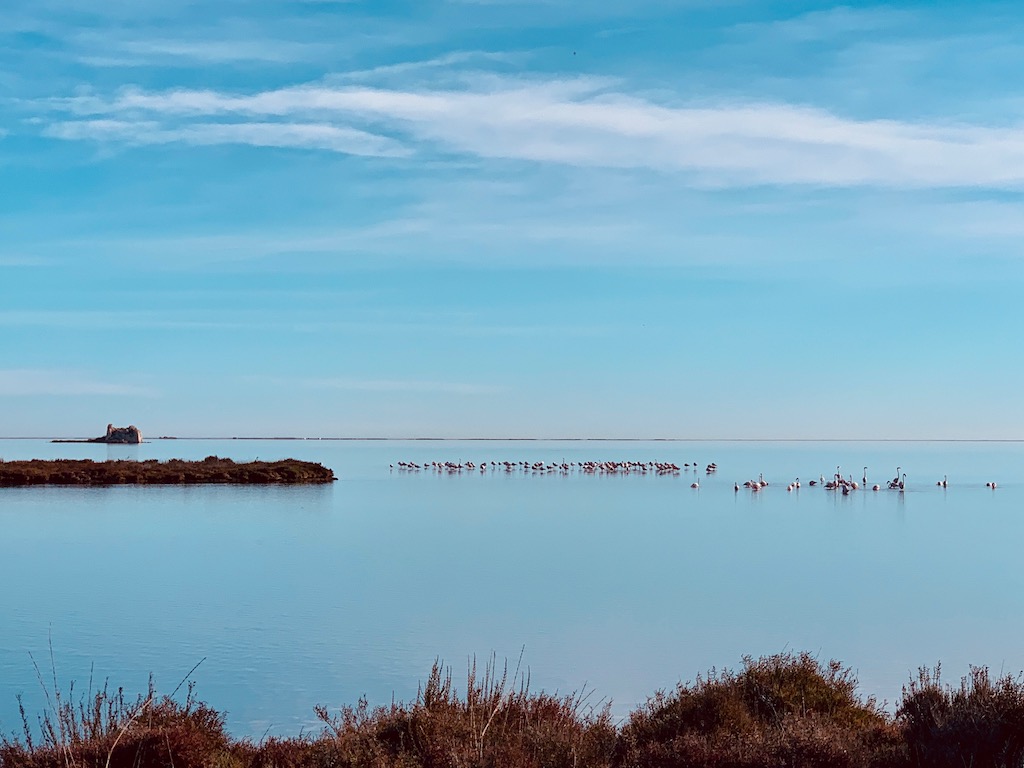 Ungefähr 40 Minuten brauche ich mit dem Fahrrad vom Hafen aus, oft gegen den Wind (mit Pesch Gegenwind bei der Hin-und Rückfahrt…grrr), aber es lohnt sich. Jedes Mal konnte ich Flamingos beobachten, mal standen sie etwas weiter entfernt, mal ganz nah.