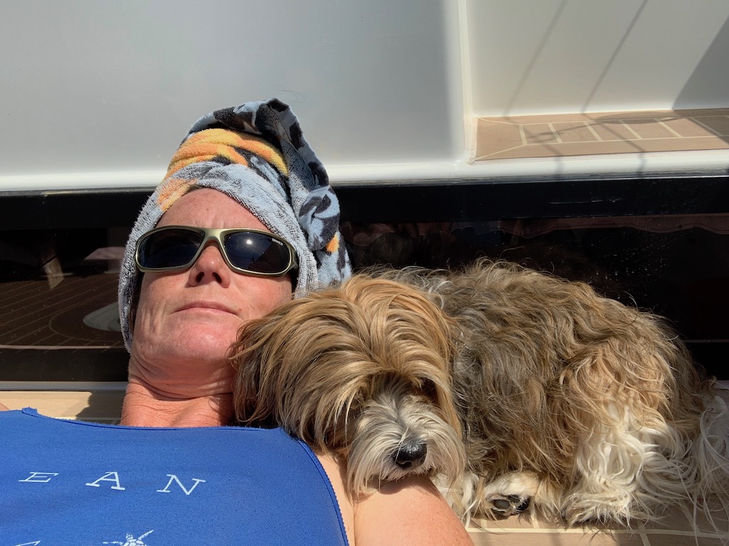 Obwohl das Wasser erst knappe 22 Grad (warm) ist, genoss ich es, morgens ein kleine Runde schwimmen zu gehen. Herrlich… danach dann ein bischen Sonne tanken und aufwärmen…