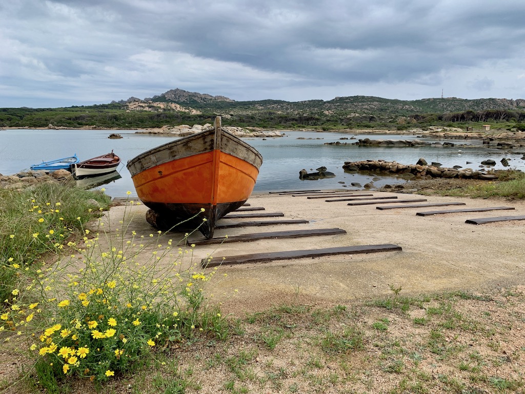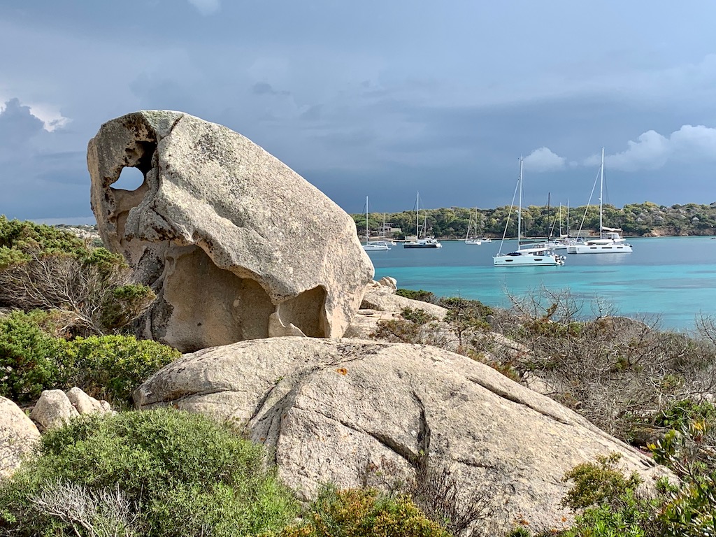 Am nächsten Tag kündigte sich wieder schlechteres Wetter an mit Gewittern, Regen und stärkerem Wind. So machten wir uns auf den Weg in eine gut geschütze Bucht, südlich von der Insel Caprera, nach Porto Palma. Diese Bucht hat weitaus weniger Charme und auch kein türkises Wasser, aber hier liegt man unter solchen Bedingungen einfach besser geschützt vor Anker.