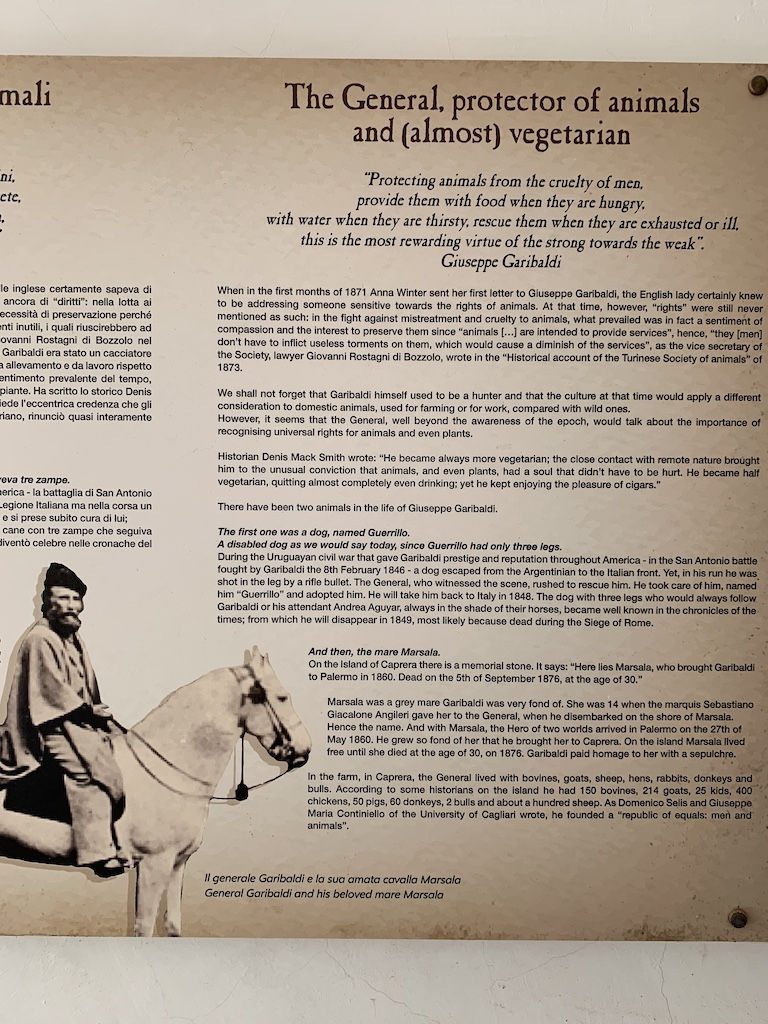 Oben angekommen, stellte ich fest, dass sich in der Festung Batteria Arbuticci nun ein Museum über Giuseppe Garibaldi befindet. Und ich hatte Glück, denn heute war italienischer Nationalfeiertag und so freier Eintritt. Perfekt…also nutzte ich die Gelegenheit mehr über Garibaldi, sein Leben, sein Kämpfe und seine Visionen zu erfahren. Etwas, was ich bis dahin wirklich noch nie gehört/gelesen hatte, ist, dass Garibaldi der erste war, der sich in Europa für die Rechte der Tiere und für die Gründung des Tierschutz eingesetzt hat. Natürlich anfangs mit viel Gegenwehr, aber er blieb hartnäckig.
