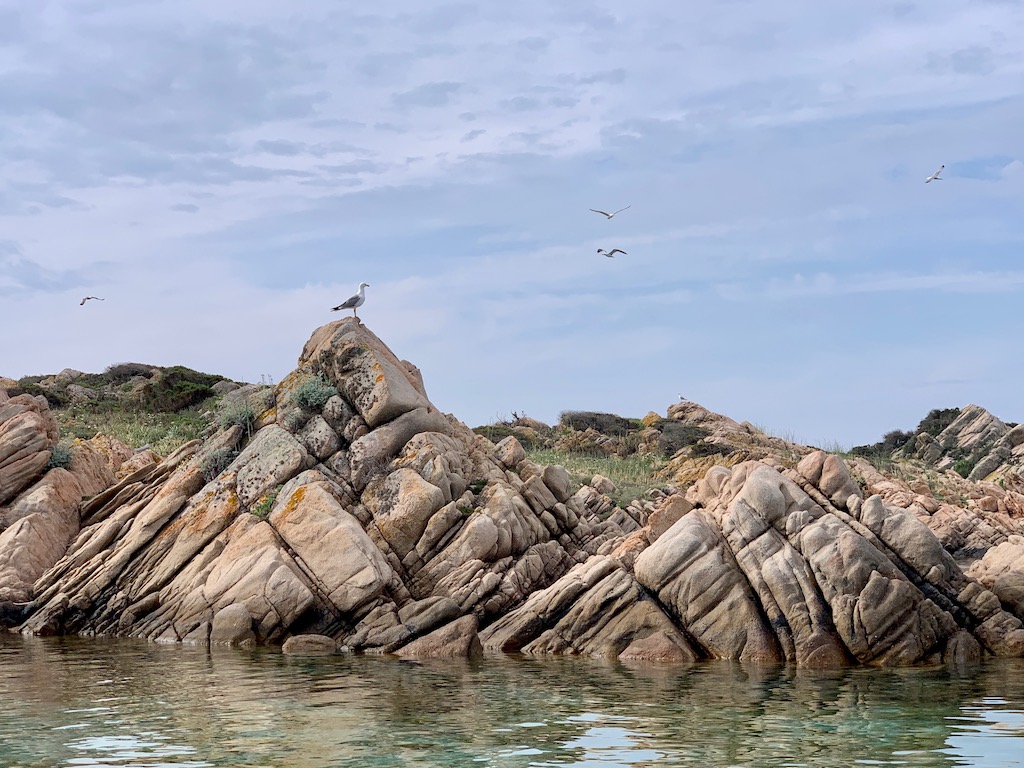 Als das Wetter nach zwei Tagen wieder besser wurde, machten wir uns an der Ostküste von Caprera entlang auf den Weg Richtung Cala Garibaldi. Diese Bucht befindet sich zwischen der Hauptinsel Maddalena und Caprera und hatte mir schon damals super gut gefallen. Die Felsformation hier sind einfach gigantisch und das Wasser herrlich schön.