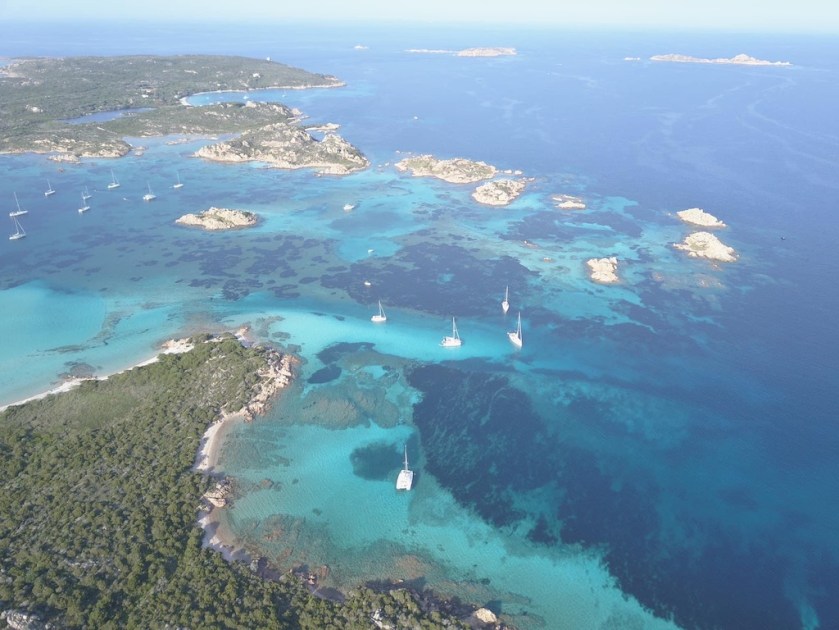 Wir haben uns dazu entschlossen, die nächsten Wochen Sardinien entgegen den Uhrzeigersinn zu besegeln. Noch ein bischen unklar waren wir uns, ob wir noch einmal Zeit im Maddalena Archipel verbringen wollten oder nicht. Dagegen sprach, dass wir hier schon vor einigen Jahren mit dem Charterboot unterwegs waren und dass jetzt genau die Pfingstferien angebrochen sind und somit sicher mehr Trubel auf den Inseln sein wird. Dafür sprach, dass es uns schon früher sehr gut gefallen hat und dass später in der Saison mit Sicherheit noch mehr los sein wird. So haben wir uns schlussendlich dazu entschlossen eine Woche im Maddalena Archipel zu verbringen. Nachdem ich uns online den „Permisso“ für dieses Naturschutzgebiet besorgt habe (den aber schlussendlich keiner kontrolliert hat…), machten wir uns auf den Weg zu der etwas entfernteren Insel Santa Maria und erhofften uns in der Cala de Santa Maria einen ruhigen Ankerplatz zu finden.