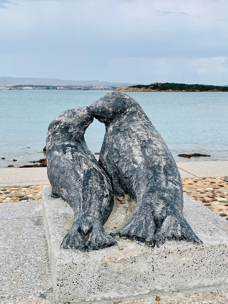 Eine spätere Erkundungstour führte mich zum kleinen Hafenort Porto Stagnali. Hier glaubt man, die Zeit wäre stehengeblieben. Der Ort besteht entweder aus alten Militärgebäuden oder aus verlassenen Einfamilienhäusern, wo aber nur jedes 3-4 noch bewohnt ist. Die dazwischen sind zugemauert oder verfallen langsam. Eine komische Stimmung…nur zwei Menschen sind mir hier begegnet. Eine (sehr) alte Frau mit ihren Hunden und ein älterer, stark humpelnder Mann, wahrscheinlich ein Kriegsveteran, der sich sehr hingebungsvoll der Restaurierung des Monumentes (Italia in Miniatura) gewidmet hat.