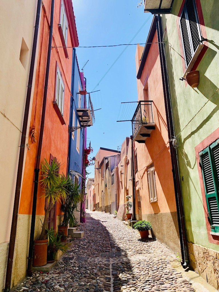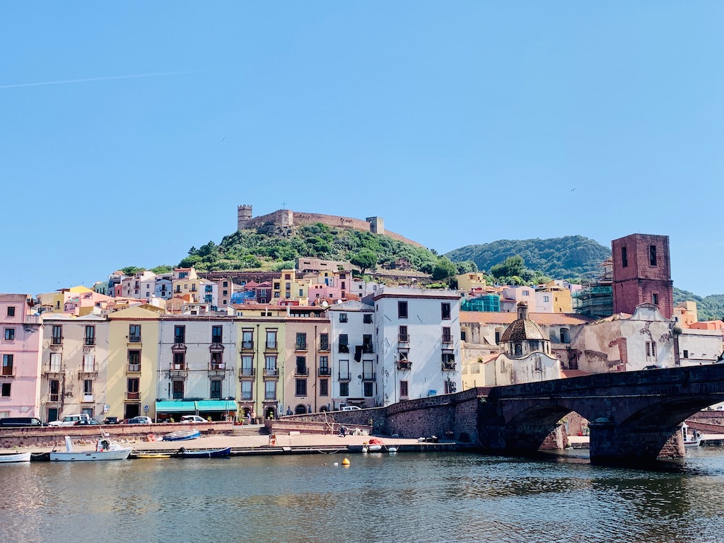 Am kommenden Tag haben wir uns nach dem Frühstück mit unserem Beiboot auf den Weg über den Fluss Temo Richtung Altstadt von Bosa gemacht, die wir nach ungefähr 25 Minuten Fahrt erreichten. Ich war voller Vorfreude als ich schon von Weitem diese vielen farbigen Häuser erblickte.
