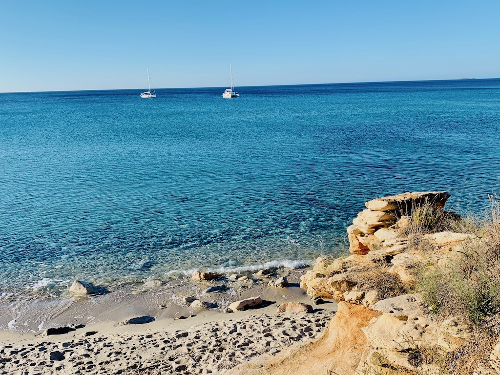 Leider ist dieser Küstenabschnitt sehr bekannt und so tummeln hier sich unzählige Motorboote und Tourischiffe. Daher zogen wir es vor die Felsen zu bestaunen und dann aber weiter zu fahren. In diesem Bootechaos wollten wir nicht bleiben. So fuhren wir weiter an der Küste entlang und ankerten schlussendlich in der Cala Luna.