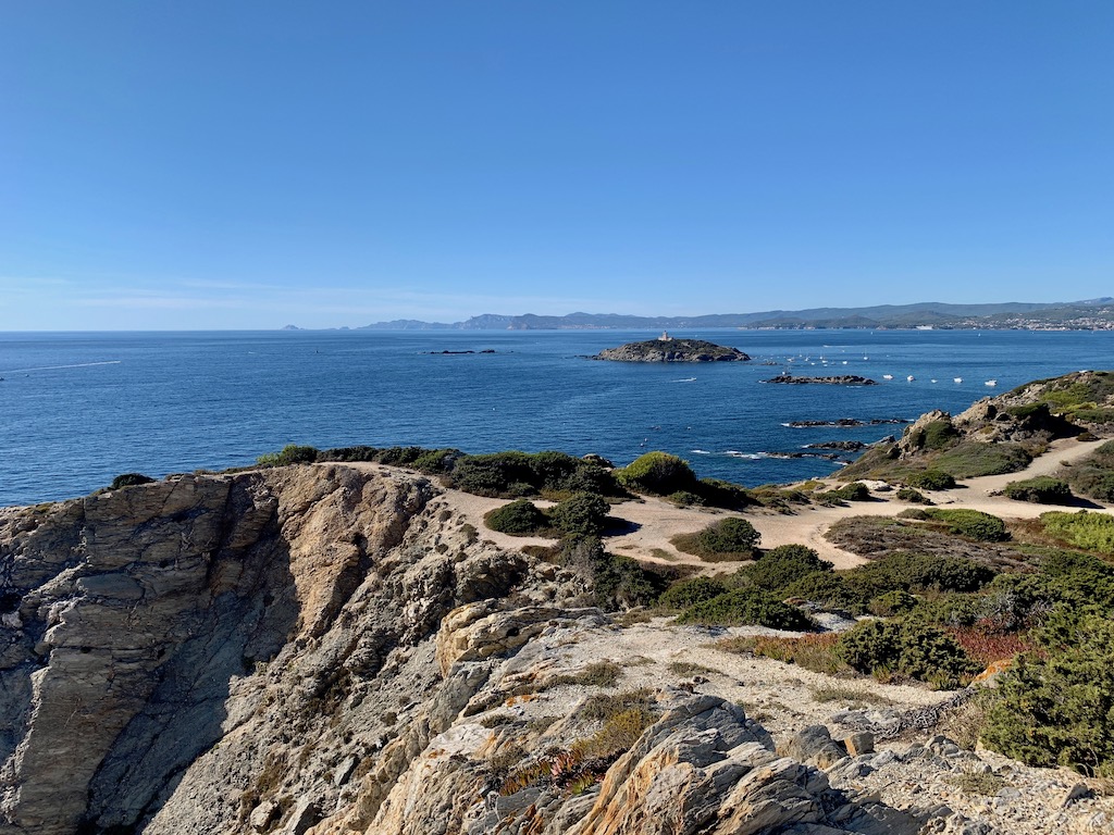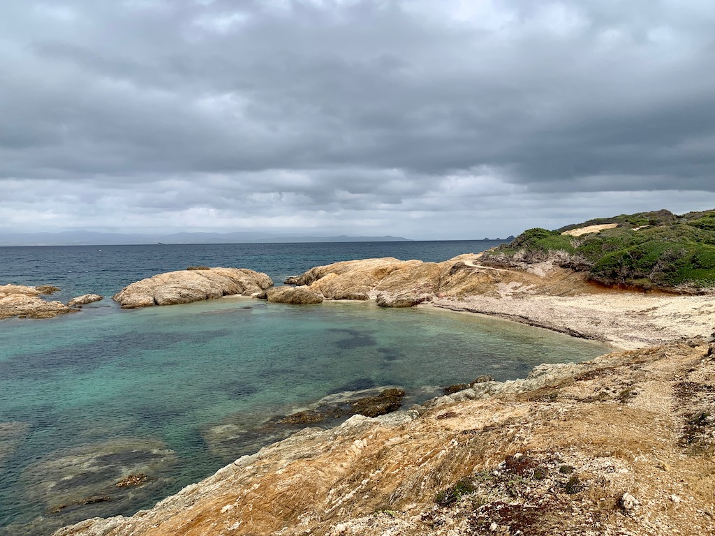 Wenn der Himmel aufklärte, nutzten wir oft die Gelegenheit an Land zu paddeln um an den Küsten entlang zu spazieren. Hier auf dem felsigen Küstenweg an der Nordwestseite von Porquerolles.