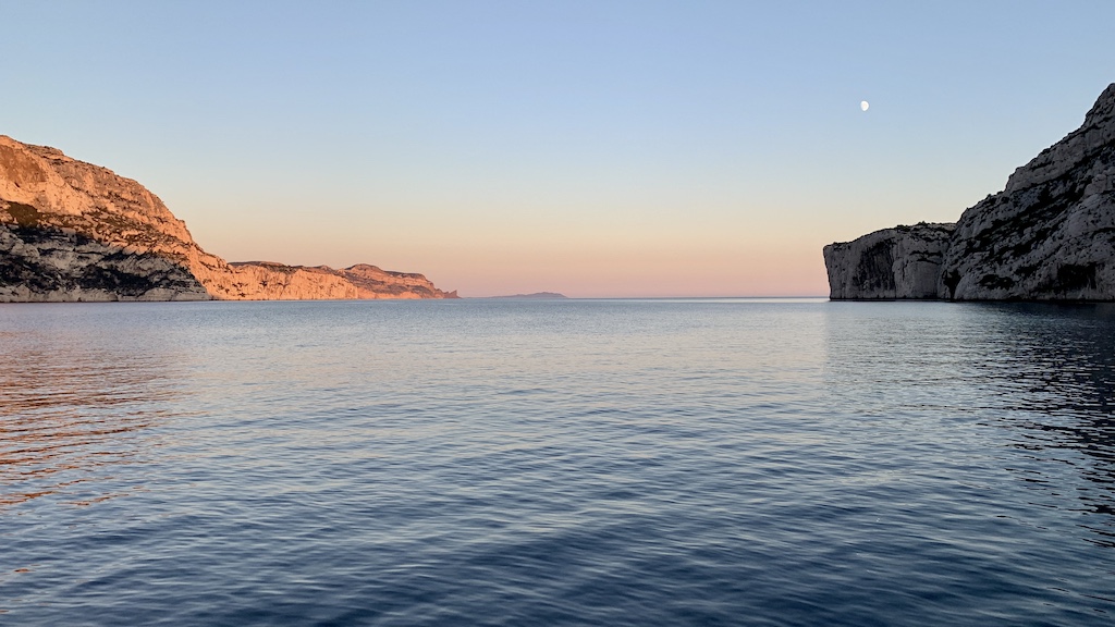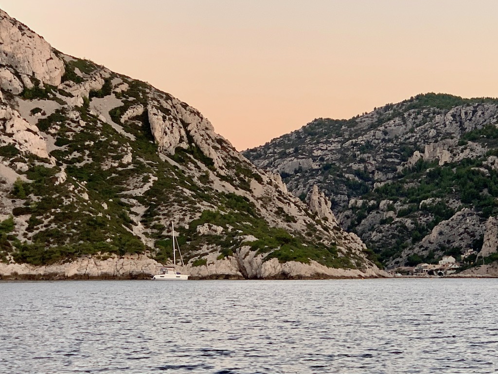 Im späten Nachmittag holte dann einer nach dem anderen seinen Anker auf, so dass wir abends noch das einzige Boot hier in der Calanque waren.