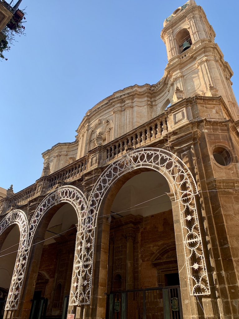 Nachdem wir uns mit dem Gedanken abgefunden hatten, dass wir mindestens 9-10 Tage auf unseren Schlauch warten mussten und wir diese Zeit mehr oder weniger „aussitzen“ müssten, hatten wir beschlossen, das „Beste“ draus zu machen. So entschieden wir uns dazu der Altstadt Trapani einen Besuch abzustatten. Am Sonntag abend machten wir uns gegen 18 Uhr mit dem Beiboot auf den Weg. Positiv ist, dass das Anlegen mit dem Beiboot hier ziemlich einfach ist. Obwohl es schon ziemlich spät war, drückte die Sonne noch richtig heftig. Nach ein paar Schritten waren wir schon schweissgebaded. Trotzdem wollten wir uns die Altstadt ansehen, denn die entpuppte sich als sehenswerter als gedacht. Es gibt viele schöne gut erhaltene Gebäude zu entdecken, vor allem viele alte Kirchen.