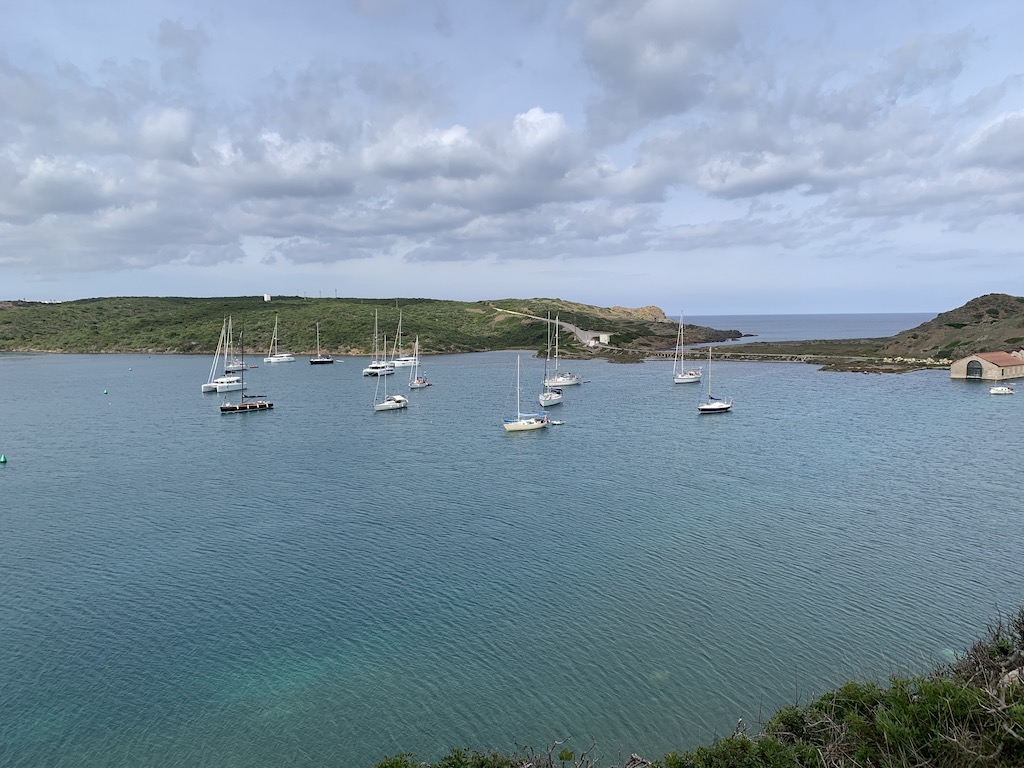 Als wir uns dann Menorca näherten, reichte der Wind leider nicht mehr zum Segeln und wir mussten die letzten paar Stunden motoren. Wir waren aber froh, dass wir den grössten Teil der insgesamt 38 Stunden unter Segel zurücklegen konnten. Wir steuerten sofort die Bucht Cala Teulera, eine uns bekannte Bucht aus der Saison 21-22. Die ist rundum gut geschützt und der ideale Platz um auf die Ankunft meiner Mutter zu warten. Die nächsten Tage verbrachten wir hauptsächlich mit Boot waschen, einkaufen gehen, Koje herrichten usw. So wie vorausgesagt wurde es ungemütlich, denn der Mistral tobte wieder mehrere Tage über uns hinweg. Bevor er wieder zu seiner Hochform auflief, unternahmen wir noch eine kleine Wanderung rund um die Bucht. Hier einige Bilder dieser rauhen Küstenlandschaft.