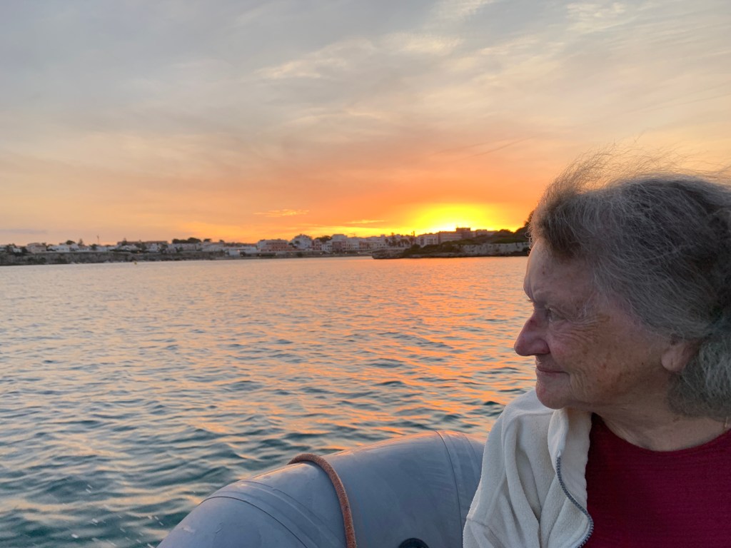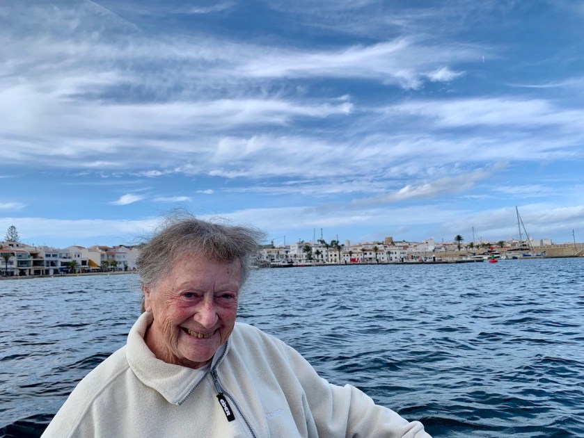 Am nächsten Tag hiess es Abschied von Fornells nehmen. Meine Mutter genoss die Aussicht während wir, ganz ruhig, nur unter Segel, die Bucht verliessen.