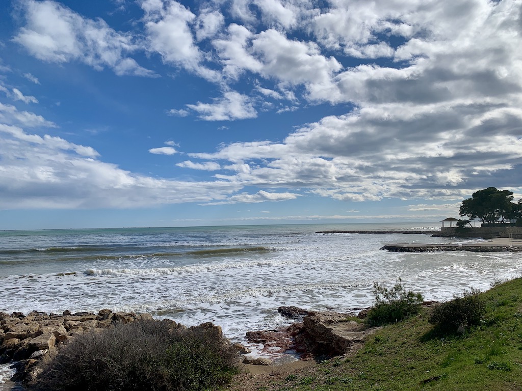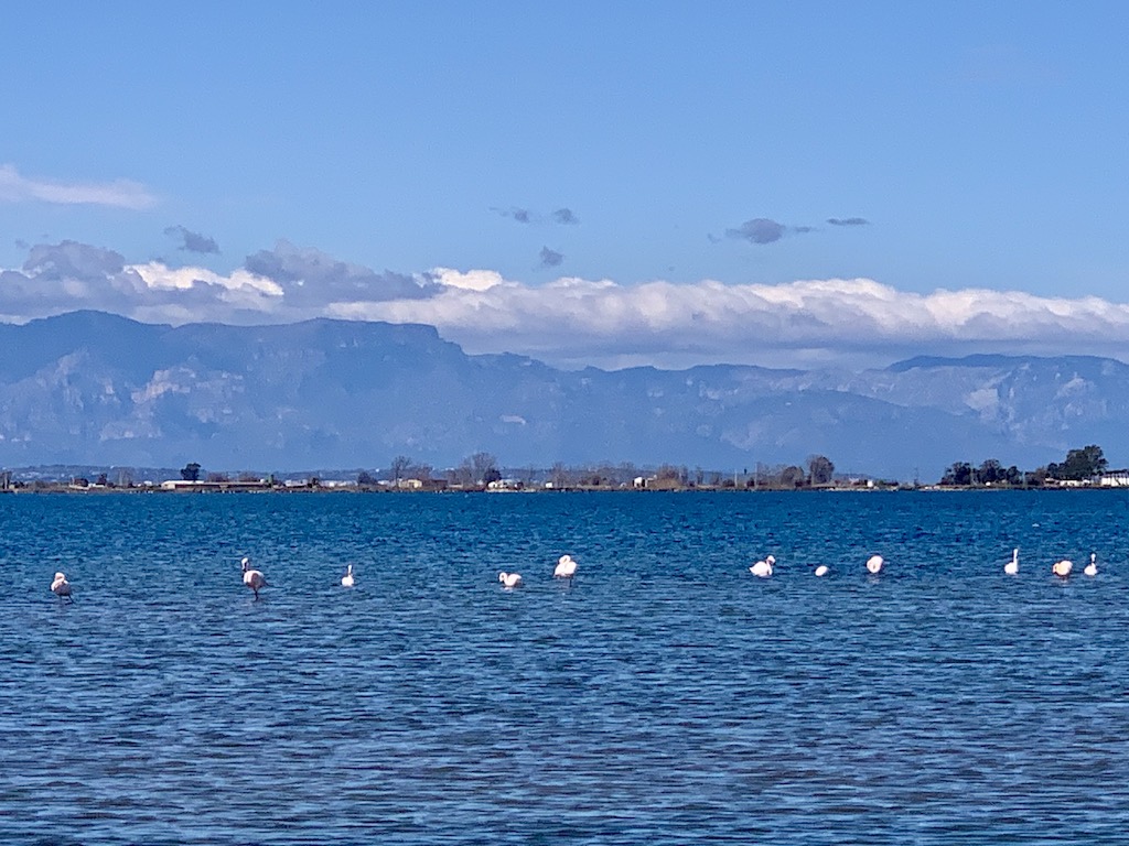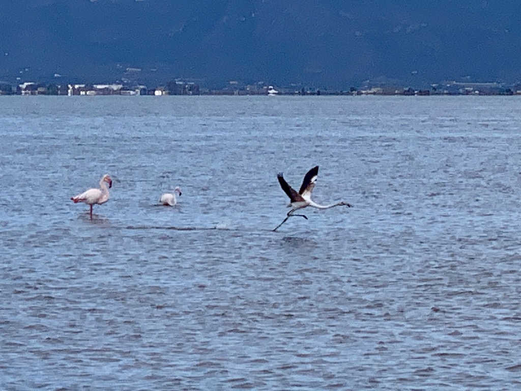 Die vielen kleinen Buchten hier fand sie auch total toll. Ein gelungener Auftakt… ich war zufrieden…so konnte es weiter gehen. Wettertechnisch verlief der nächste Tag ähnlich. Vormittags Regen, aber am Nachmittag klärte es wieder auf, so dass wir uns dazu entschlossen noch einmal zum Torre Sant Joan zu spazieren um Flamingos zu beobachten. Leider war es hier ziemlich windig und kühl und die Flamingos standen alle relativ weit entfernt. Aber ihr Schnattern war gut zu hören.