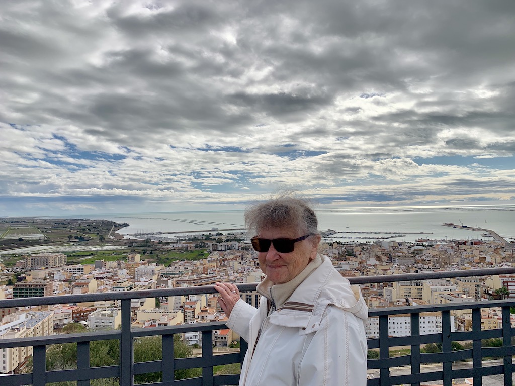 Ich schlug meiner Mutter vor, mit dem Wagen zum Schloss Castell de Suda hoch zu fahren, denn ich weiss seit meinem Besuch mit Guy vor 2 Jahren, dass man von hier eine sehr spektakuläre Aussicht über Tortosa und das Ebrotal hat. Leider hingen die Wolken heute noch immer sehr tief und die Berge rundherum konnte man nur erahnen, aber meiner Mutter gefiel die Aussicht trotzdem sehr gut.