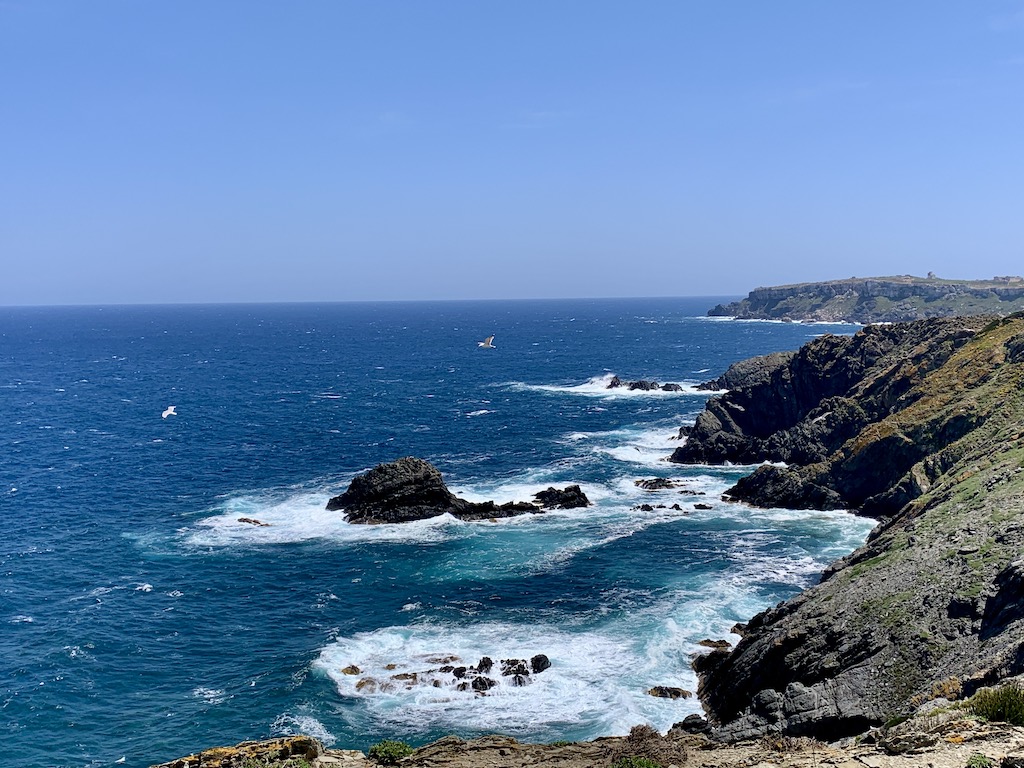 Meinen letzten Blog verfasste ich in der Cala Teulera auf Menorca. Genau wie erhofft, hatte sich der Mistral am kommenden Tag ein bischen beruhigt und so auch die Wellen, so dass wir uns am Sonntag dann auf den Weg Richtung Südsardinien machten. So beschloss ich den letzten Tag auf Menorca noch einmal für eine ausgeprägte Wanderung zu nutzen, bevor die 200 sm Überfahrt anstand. Ich wanderte an der wilden Küste entlang bis zur Cala Llonga und genoss diese herrlich raue Landschaft, diese Ruhe (ausser dem aufgeregten Geschnatter der Möwen, wenn ich mich ihren Nistplätzen zu sehr näherte).