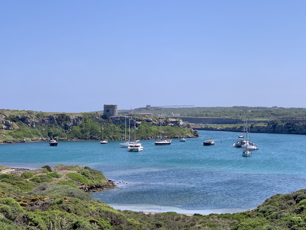 Auf dem Weg zurück zur hatte ich diese schöne Aussicht auf die Cala Teulera, Adesso und den Wachturm im Hintergrund.