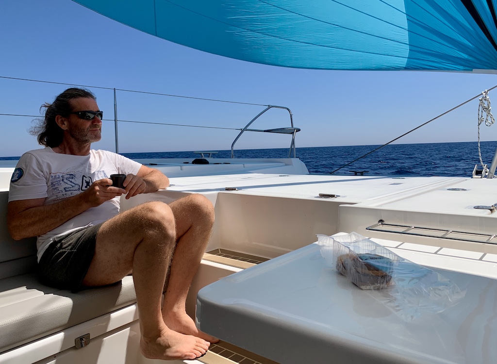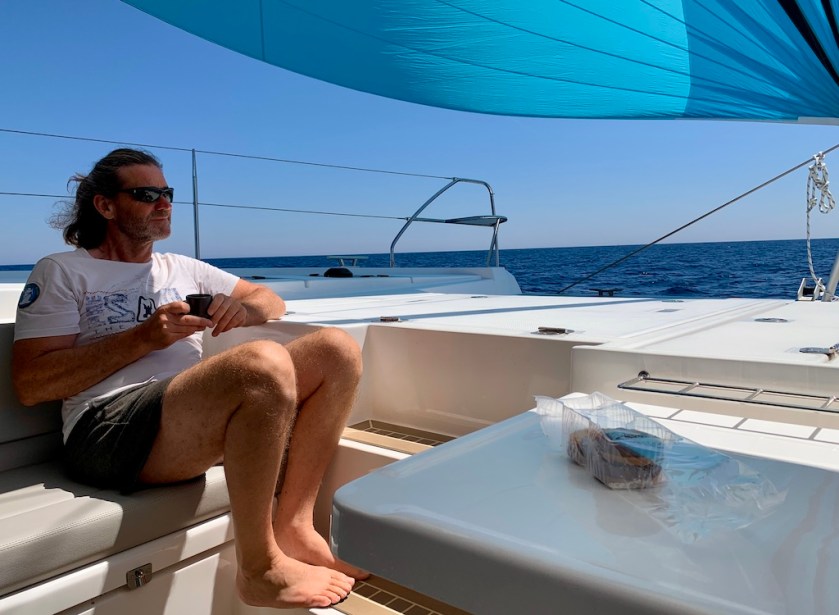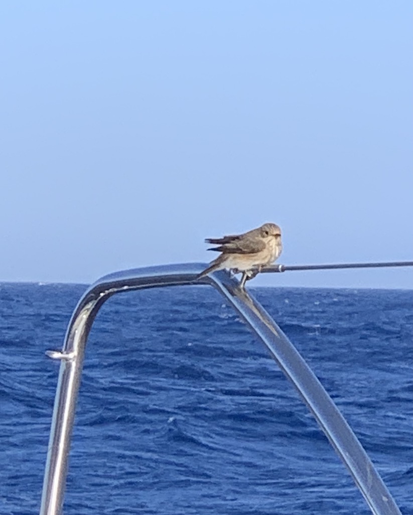 So relax müssten alle Überfahrten sein, Kaffee und Kekse, relax vorne mit Blick aufs Meer… auf der Suche nach Delfinen, Schildkröten oder einem Wal (den wir aber leider bis jetzt noch nie erblicken konnten). Am Abend gesellte sich noch ein kleiner Begleiter hinzu.