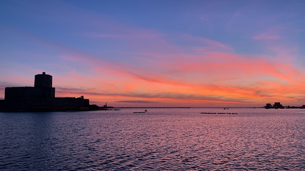 Unser Anker fiel in der Abenddämmerung, kurz nach Sonnenuntergang vor Trapani. Erleichtert angekommen zu sein, die 2x 200 Seemeilen in kurzer Zeit geschafft zu haben, genossen wir unser Abendessen vor atemberaubender Kulisse in Trapani und verschwanden anschliessend schnell in der Koje.