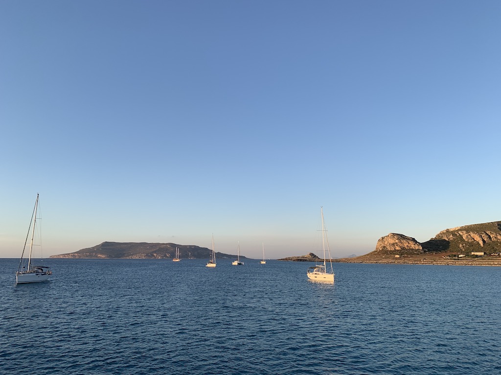 Als wir uns am Morgen die Wetterprognosen ansahen, stand schnell fest, dass wir entweder sofort wieder aufbrechen um Kurs Richtung Sizilien zu nehmen oder wir müssten sicher mindestens eine weitere Woche auf Sardinien „warten“, bevor sich wieder ein Wetterfesnter auftut. Da unser Ziel diese Saison Griechenland ist und wir vorher noch ein bischen Zeit auf den ägadischen und liparischen Inseln verbringen möchten, entschieden wir uns, sofort weiter zu fahren und keine Zeit zu verlieren. Ich hatte ehrlich gesagt keine Lust sofort aufzubrechen und hätte mich gerne einen weiteren Tag hier ausgeruht, aber länger hier festsitzen, wollte ich auch nicht. Also frühstückten wir und ich kochte noch ein paar Nudeln fürs Abendessen und dann gings weiter.