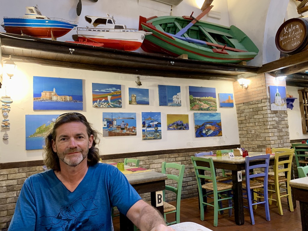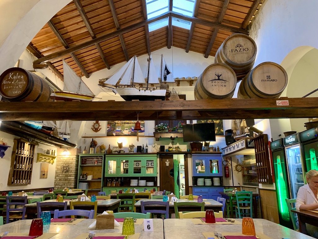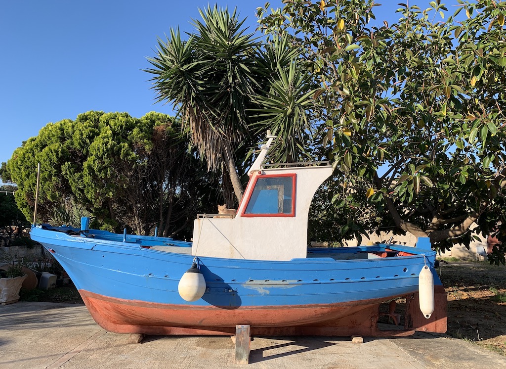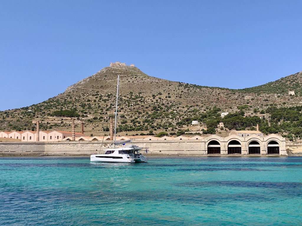 Am nächsten Tag brachte ich Guy nach dem Frühstück mit dem Beiboot rüber zum Hafensteg (einmal umgedreht, denn normalerweise bringt er mich ja immer rüber an Land), denn er wollte sich das Museum Tonnara Florio di Favignana ansehen, welches sich in der ehemaligen Thunfischfabrik befindet. Ich zog es vor, nicht mitzugehen, denn in vielen Bewertungen schrieben die Leute, dass die Besucher das Gemetzele der Thunfische wohl anhand von Fotos und Videos sehr deutlich vor Auge geführt bekommen…also definitv nichts für mich. Das Fazit von Guy war dann auch eher bescheiden. Er meinte, die Renovation der alten Fischfabrik sei zwar sehr geglückt und das Bauwerk wäre sehenswert, aber sonst hätte ihn das Museum jetzt nicht umgehauen und die 10 Euro hätte er lieber in zwei Bier investiert… also, in seinen Augen „kein Muss“, wenn man in Favignana ist…