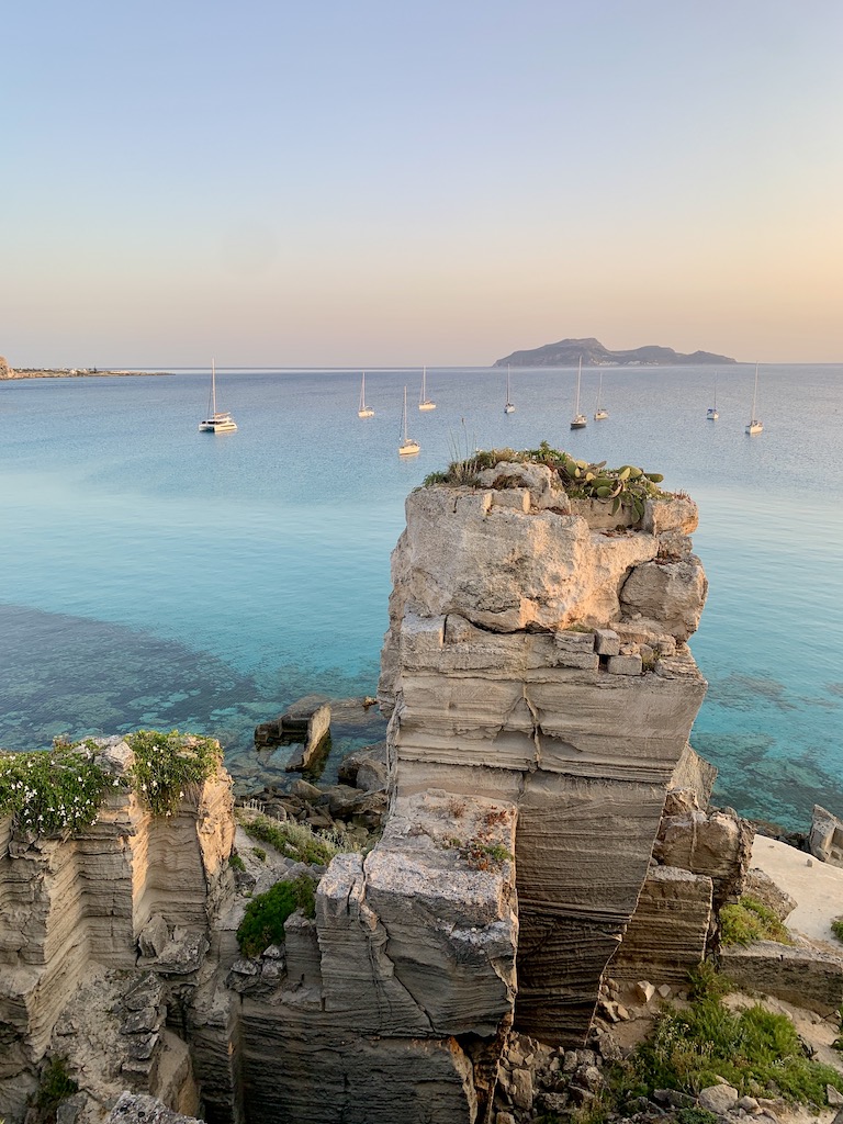 Im späten Nachmittag leerte sich die Bucht so langsam. Alle Gomoni und Tourischiffe machten sich auf den Weg zurück in den Hafen von Favignana, Trapani usw. Ruhe kehrte ein… herrlich. Nur ein paar Boote blieben für die Nacht. Am nächsten Morgen machte ich mich wieder früh auf den Weg mit dem SUP Richtung Land um eine kleine Wanderung durch diese Felsenlandschaft zu unternehmen und mir das Ganze aus der Nähe anzuschauen. Wirklich ganz speziell…