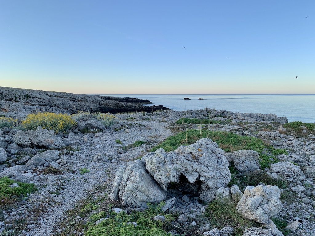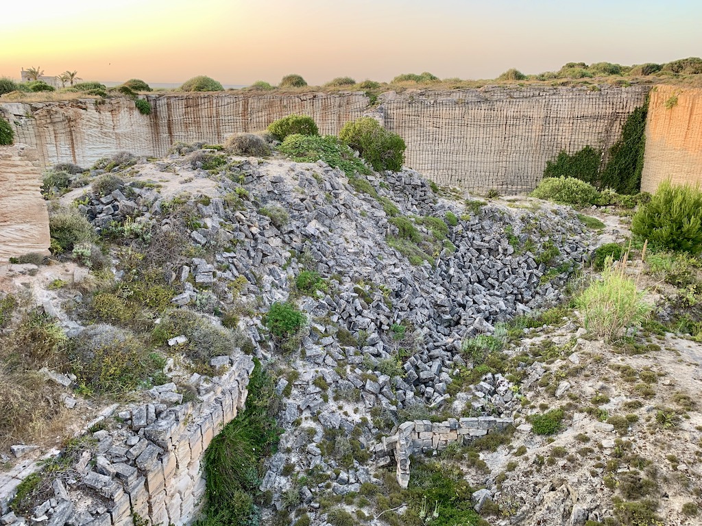 Am Abend fuhren wir zum Abendessen noch einmal rüber zum Dorf und machten anschliessend einen Verdauungsspaziergang an der Ostseite entlang, wo früher Kalkarenitabbau betrieben wurde.