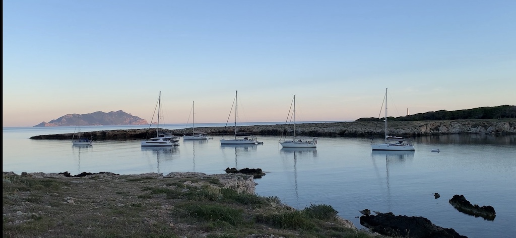 Jetzt war es an der Zeit unsere Standups wieder hervor zu holen und aufzupumpen. Während der Wintermonate hatten wir die in den Backskisten verstaut, aber jetzt kommen sie wieder zum Einsatz. Am Nachmittag machte ich mich auf den Weg um die buchteneigene Grotte und die Küste zu erkunden. Nach und nach füllte sich die Bucht mit weiteren Segelbooten und vor allem mit „Gomones“, wie hier in Italien die Schlauchboote genannt werden. Diese machen sich dann aber gegen 17-18Uhr wieder auf den Weg zurück in den Hafen.