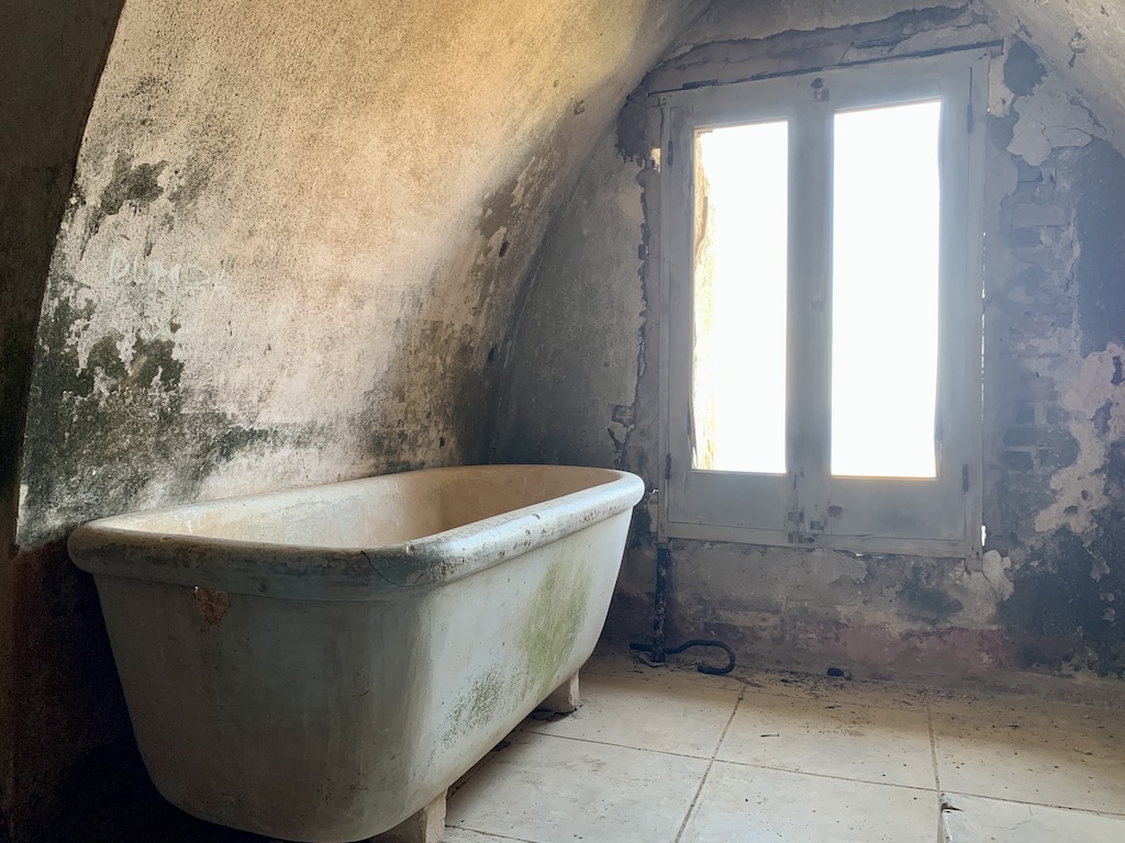 Eigentlich ist das „Schloss vorübergehend geschlossen“, weil baufällig, aber das hielt uns und ein paar weitere „Entdeckungsfreudige“ nicht davon ab, uns auch im Innern umzuschauen. Schon spannend, aber auch traurig, dass alles so verfällt und sich selbst überlassen wird.