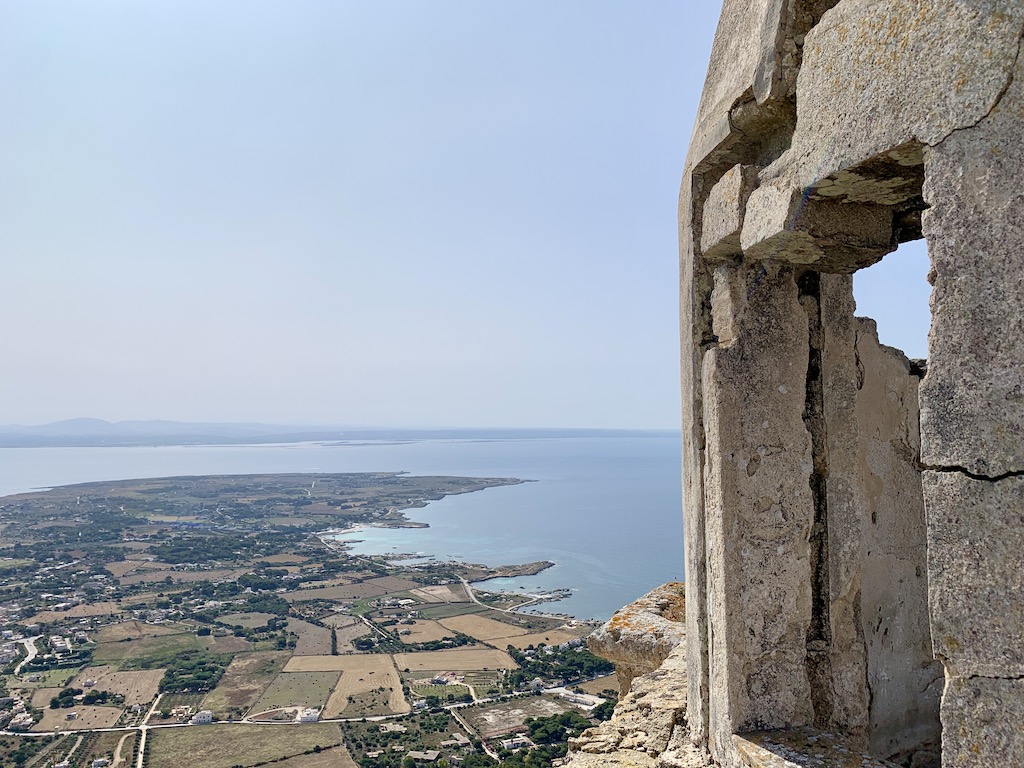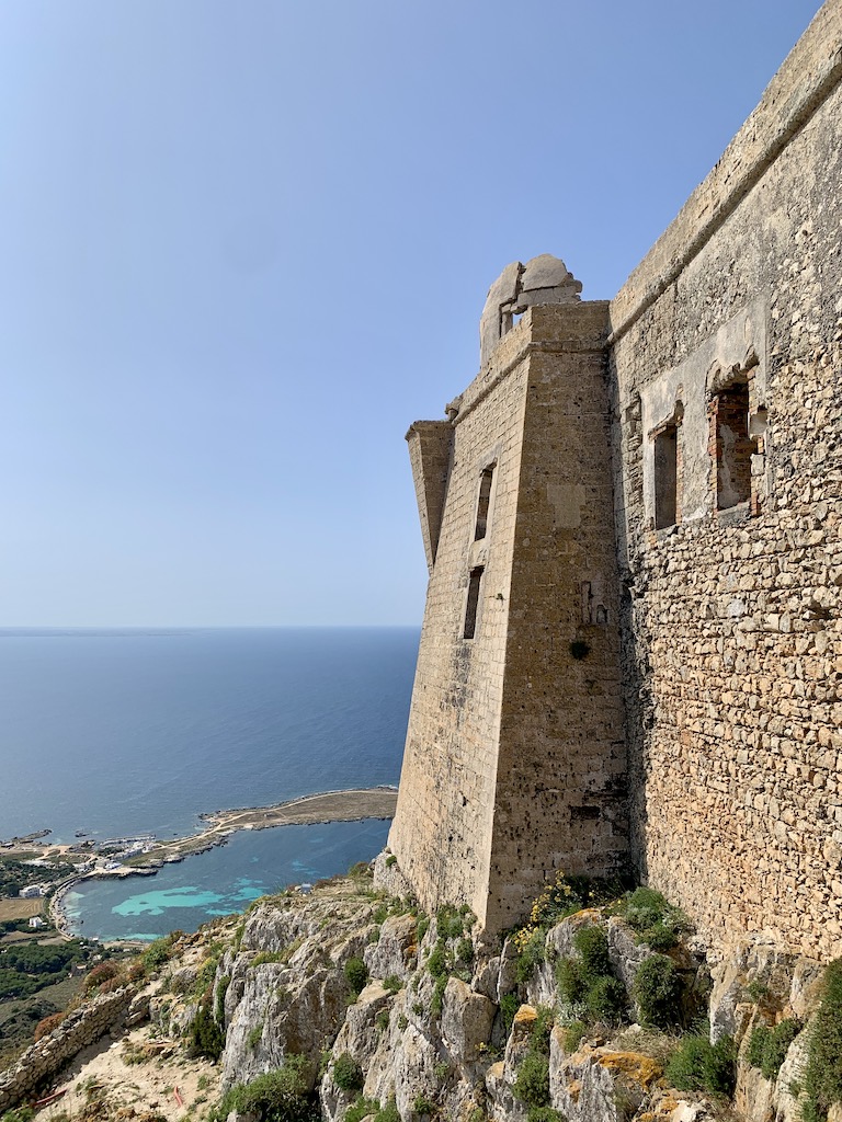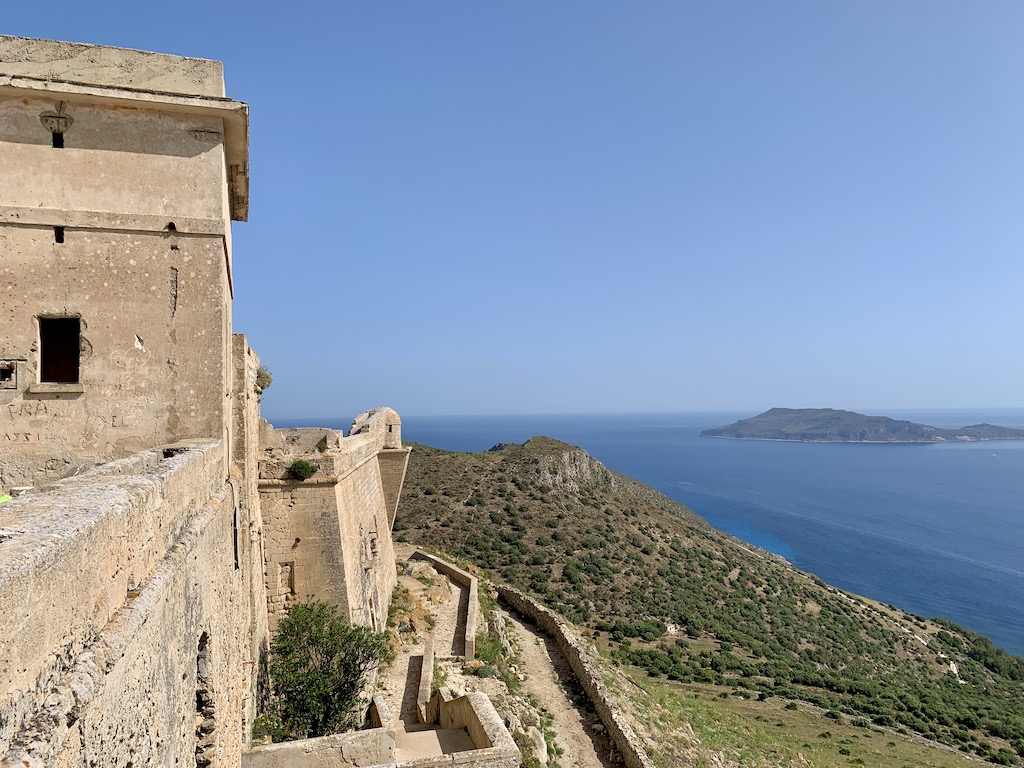 Am kommenden Morgen unternahmen wir eine anstrengende Wanderung zum Castello di Santa Caterina, das 310m über dem Meeresniveau trohnt und somit der höchste Punkt der Insel ist. Der Weg, obwohl gut begehbar, verlangt einem schon ein bischen ab, aber die 360 Grad Panoramaaussicht war grandios und entschädigte für die Schweisstropfen.