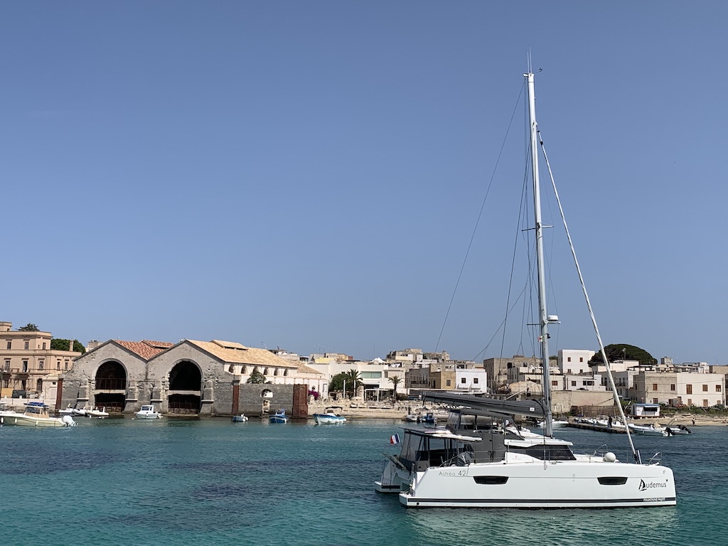 Nach guten 2 Stunden, denn wir waren richtig schnell unterwegs, erreichten wir unseren neuen Ankerplatz vor dem Dorf Favignana.
