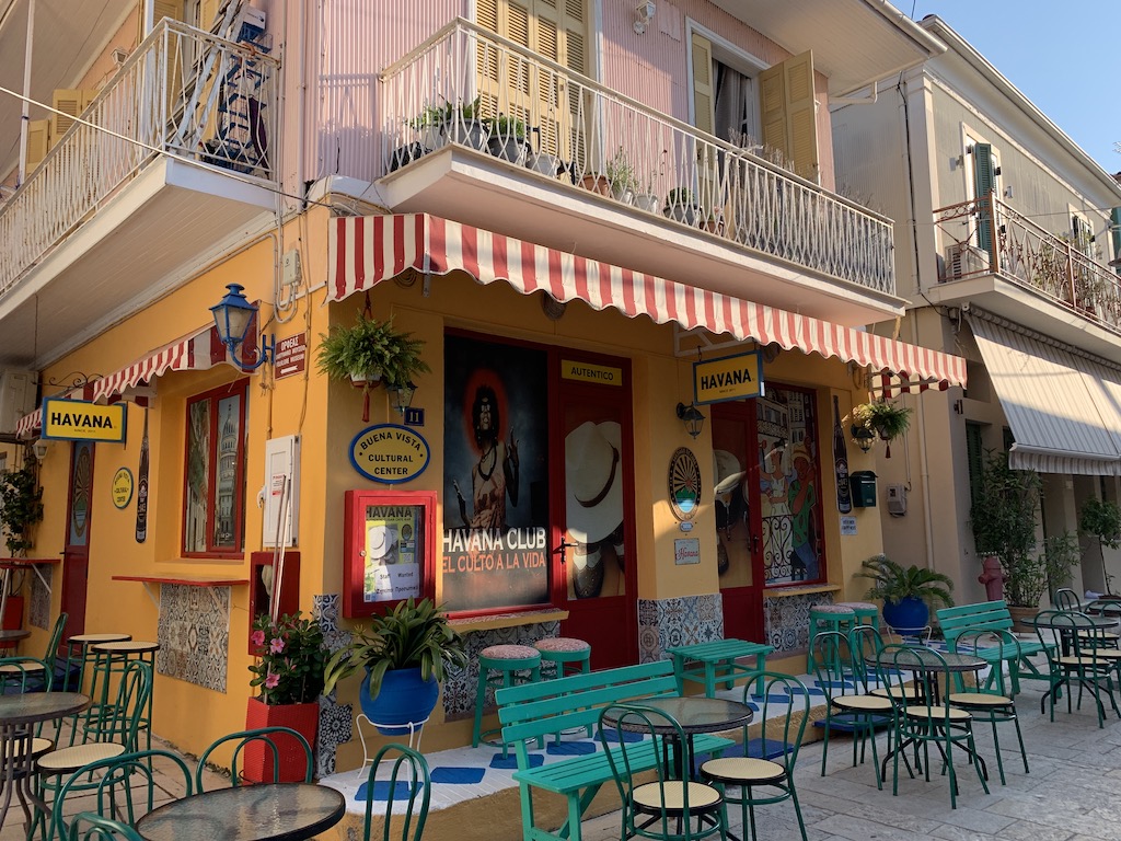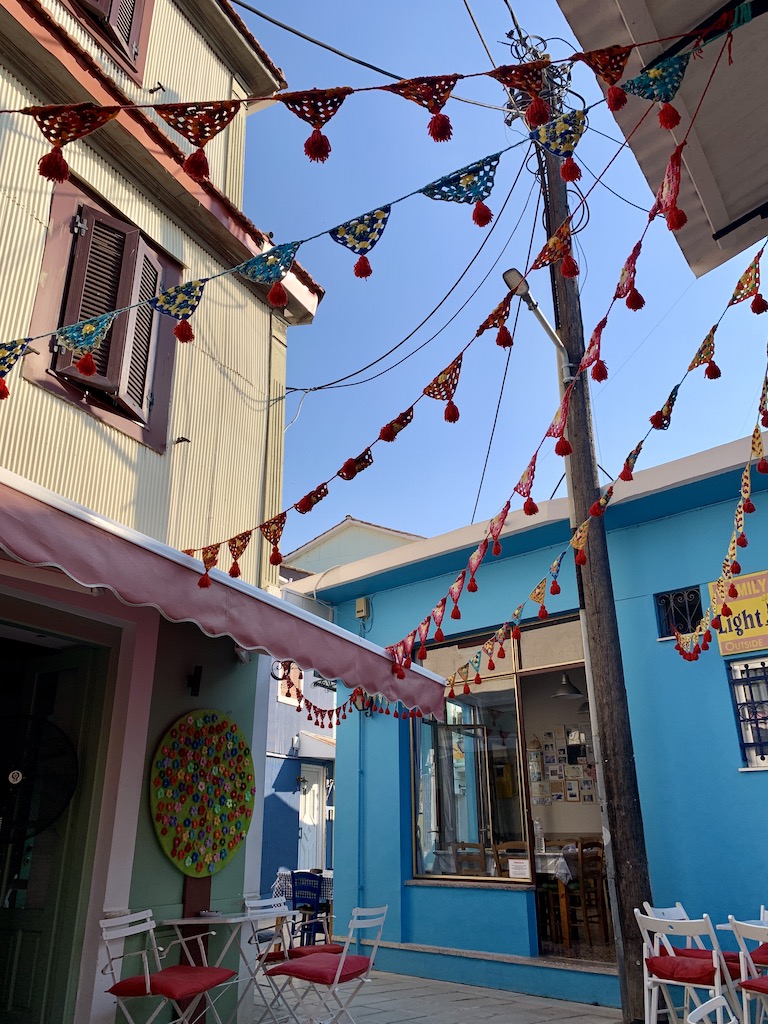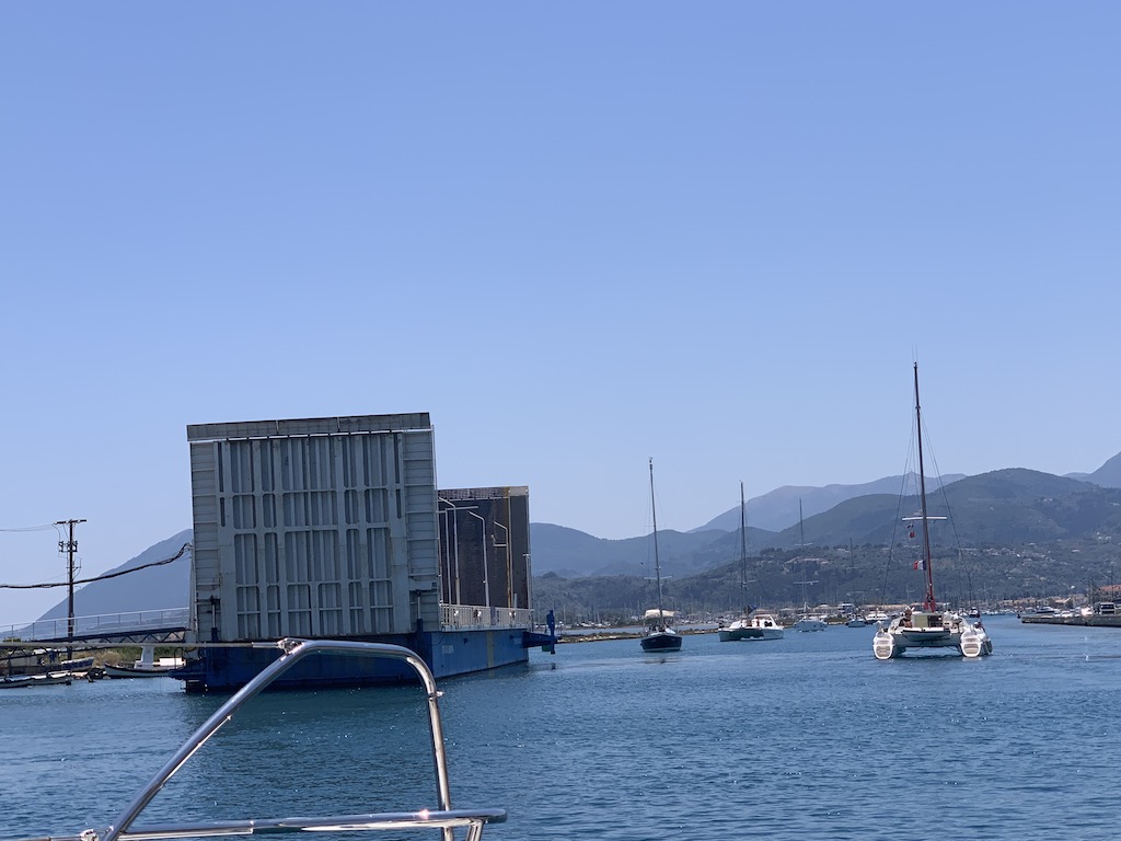 Alles verlief ohne Probleme…schliesslich sind wir Brücken ja schon aus den Niederlanden gewöhnt ;-). Kurz nach der Brücke, bogen wir rechts zu den Ionion Sails Stegen ab, wo noch reichlich freie Liegeplätze waren. Als die Sonne etwas tiefer stand, machten wir uns auf Erkundungstour durch Lefkada. Lefkada ist keine typisch griechische Stadt, denn sie wurde 1953 stark durch ein Erdbeben zerstört und da die finanziellen Mittel für einen Wiederaufbau grösstenteils fehlten, wurden viele Häuser nach und nach und relativ notdürftig wieder aufgebaut. Die Fassenden vieler Häuser wurden mit Wellblech eingekleidet und bunt angestrichen. Anscheinend würde es ein bischen wie Cuba aussehen (aber da wir noch nie in Cuba waren, kann ich das jetzt nicht bestätigen). Aber könnte stimmen…
