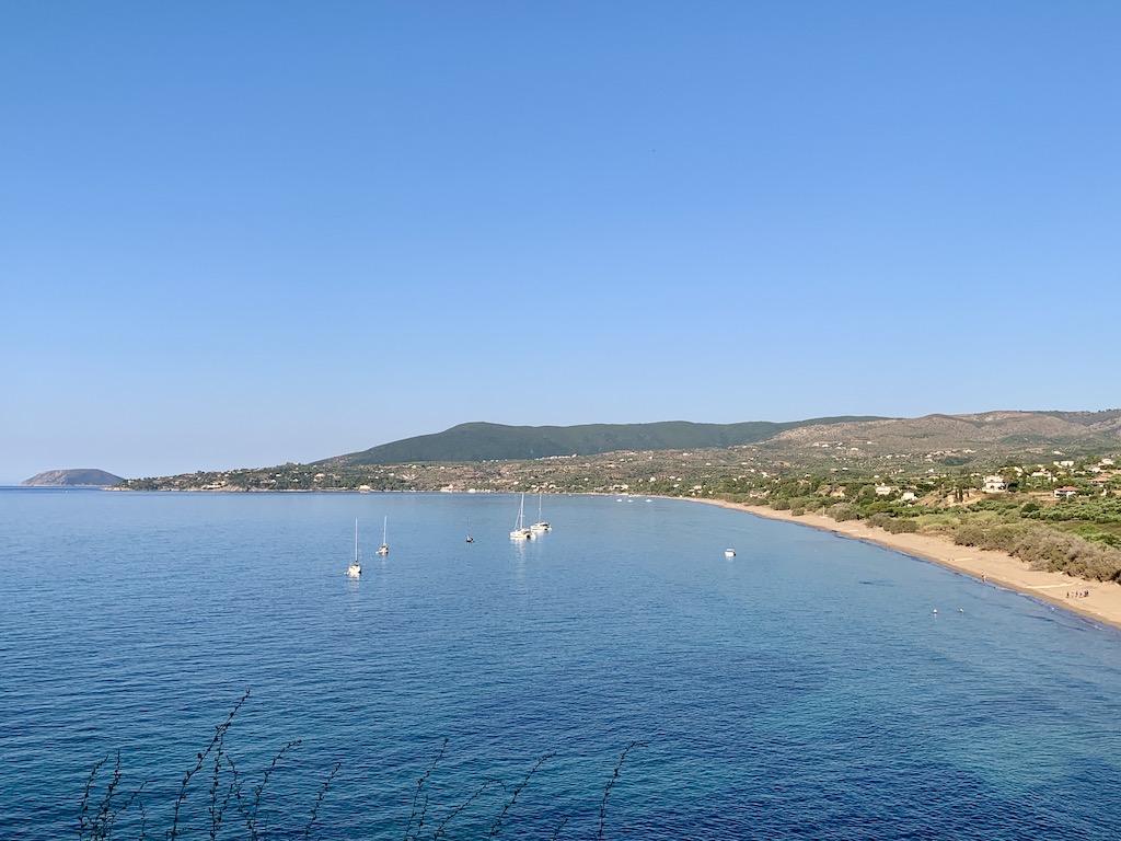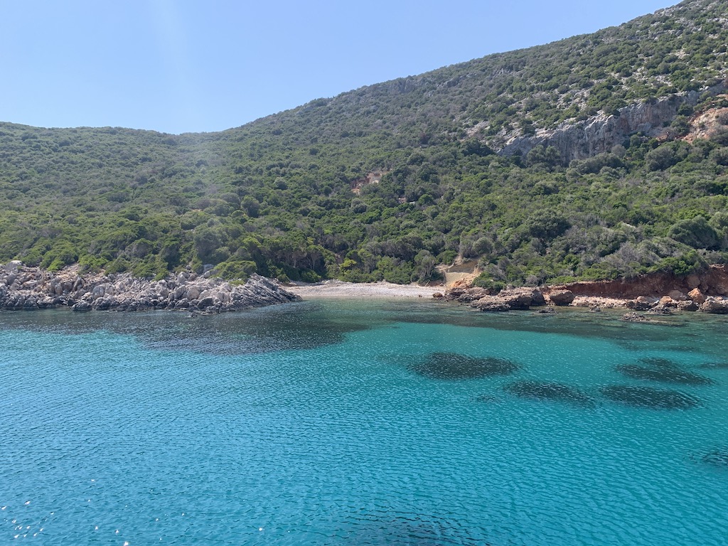 Wie in meinem letzten Blog „angekündigt“, starteten wir in Methoni, als der NW-Wind sich wieder ein bischen beruhigt hatte. Unser Ziel, die vorgelagerte Insel Sapientza. Diese unbewohnte Insel ist nur 3,5 Seemeilen entfernt, aber als wir dort ankamen und noch kein anderes Boot vor Anker lag, fühlten wir uns ein bischen, als wären wir in einer anderen Welt angekommen. Ausser Grillenzirpen und Wasserplätschern, kein anderes Geräuch… herrlich.