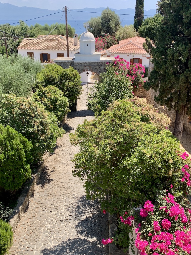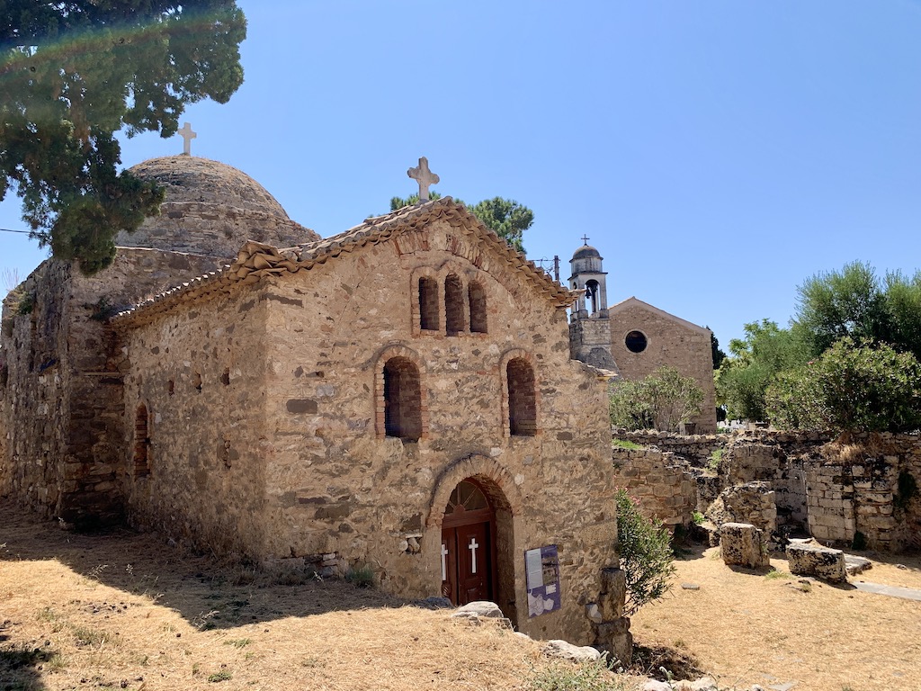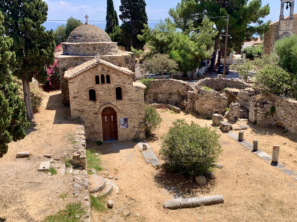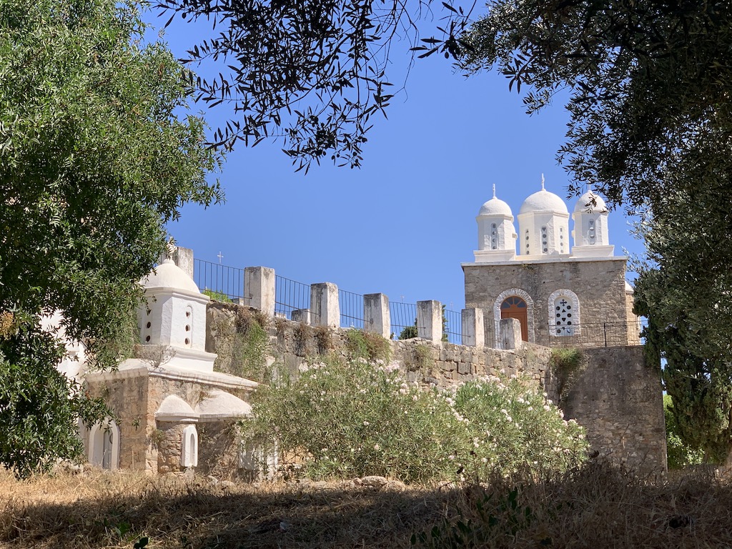 Seit dem Jahr 1918 gehören die kriegerischen Auseinandersetzungen um die Festung glücklicherweise der Geschichte Koronis an. Mit der Gründung des orthodoxen Nonnenklosters hielten Frieden und Andacht Einzug. Auf dem Gelände befindet sich die byzantinische Kreuzkuppelkirche Agia Sophia, die auf den Resten eines antiken Apollontempels erbaut wurde.“ Die war schon beieindruckend… ich schoss viele Fotos 😉