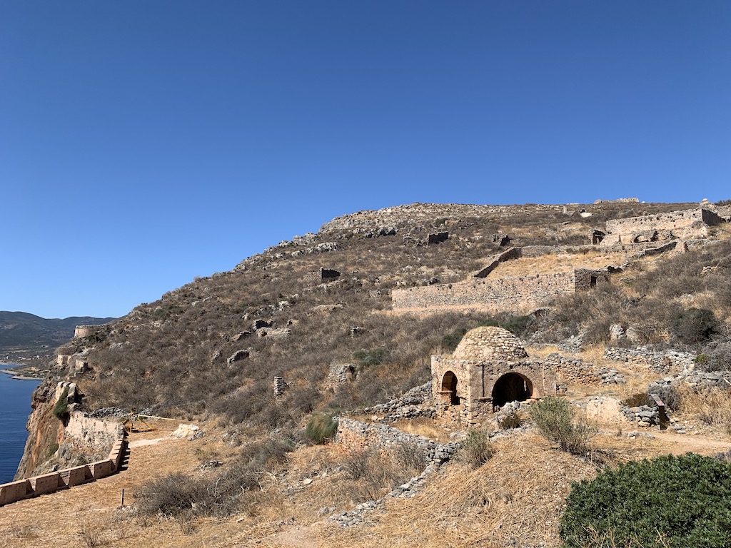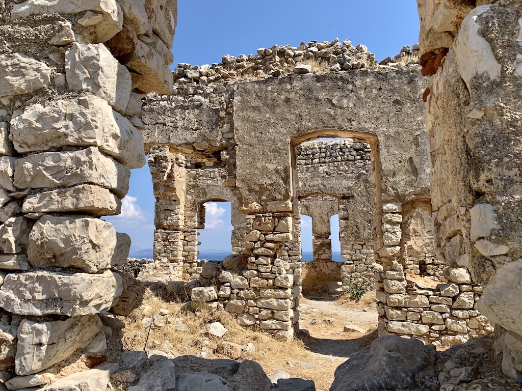 Nach dem Mittagsessen machten wir einen Spaziergang am Leuchtturm und der kleinen Kapelle vorbei bis hoch zum „Castle of Paralio Astros“. Hier gab es ausser den Aussenmauern nicht mehr sehr viel zu bestaunen, nur vereinzelte Überreste von ein paar Häusern, die noch nicht zusammengefallen sind.