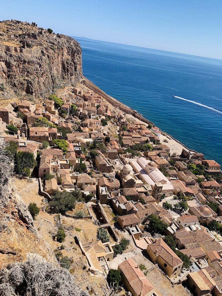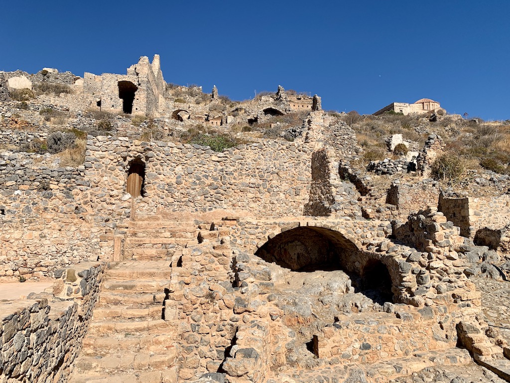 Am nächten Morgen hatte der Wind sind endlich „ausgeblasen“, ja es war sogar fast windstill. Also perfekt für eine Besichtigungstour von der Altstadt Monemvasia, die zu den Top-Sehenswürdigkeiten zählt.