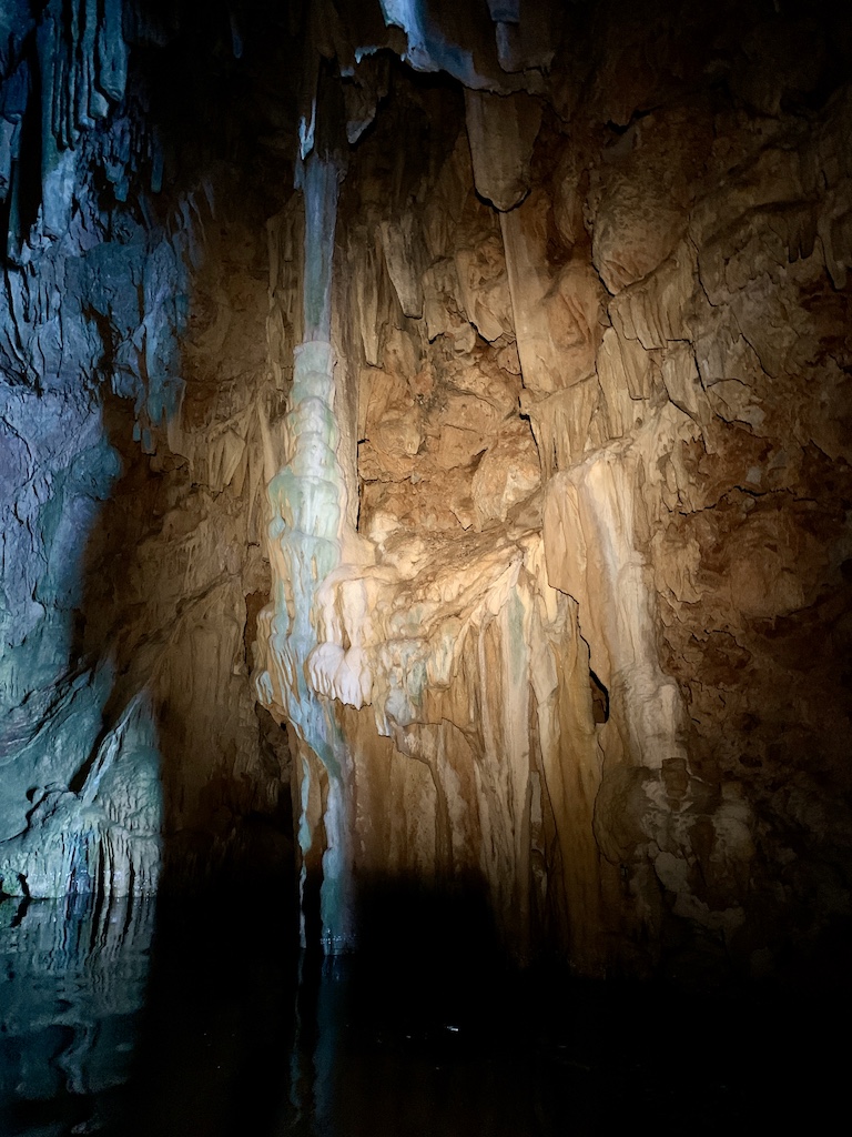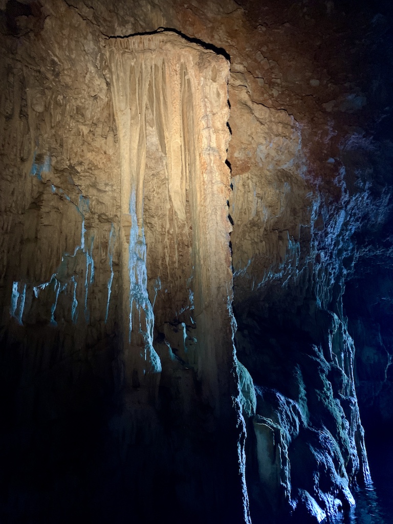 Am nächsten Tag hatte sich die „Froststimmung“ an Bord wieder etwas erwärmt, so dass wir uns gemeinsam mit den SUP’s auf Erkundungstour durch die Bucht begaben. Vorsichtig paddelten wir auch in eine kleine Höhle hinein. Als wir das Innere mit unserer Taschenlampe beleuchteten, waren wir von den Stalakmiten und -titen beeindruckt.