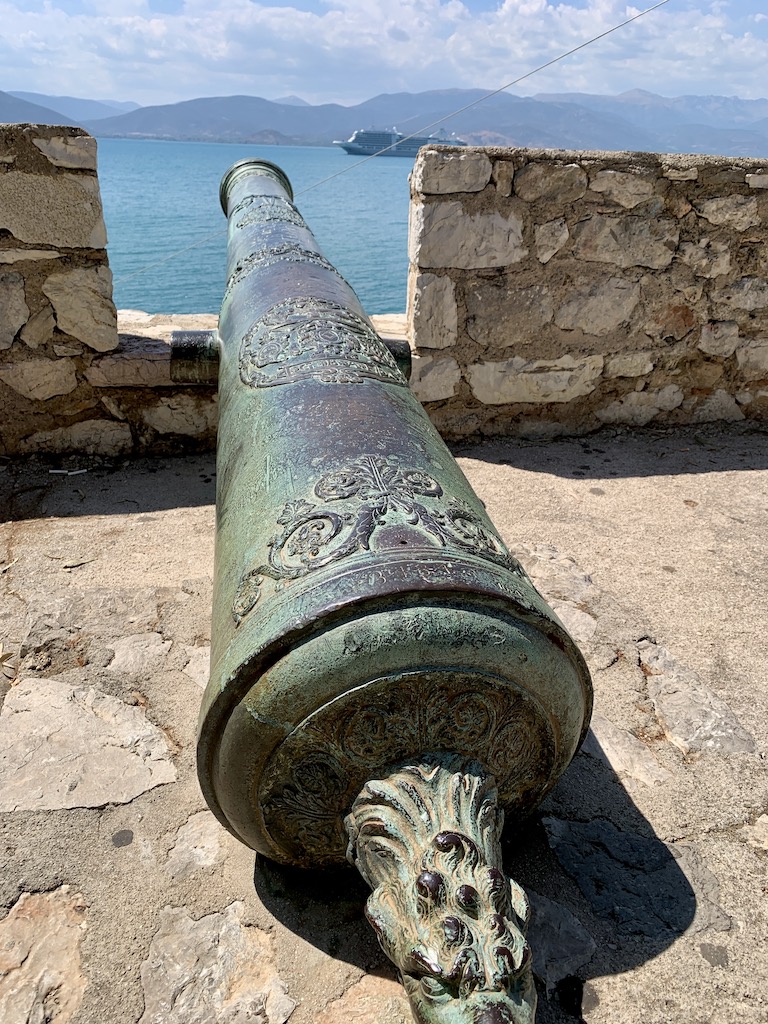 Da der Wind am Nachmittag wieder ordentlich auffrischte, beschlossen wir an Bord zu bleiben und erst am nächsten Morgen unsere Besichtigungstour zu starten. Als erstes stand die Festung Palamidi auf unserem Programm. Knappe 900 Stufen führen hinauf zum Eingang der Festung. Der Eintrittspreis von 20 Euro/Person fanden wir masslos übertrieben. Aber die meisten, so wie wir, wenn sie dann schon mal in Nafplio sind, wollen dann auch diese Festung besichtigen, bezahlen dann also auch zähneknirschend diese Summe. Die Hälfte des Preises wäre definitiv eher angebracht gewesen, zumal massiv Fördergelder aus der EU in die Restauration geflossen sind.