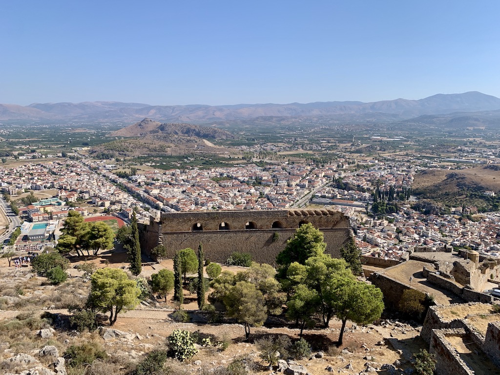 Die Festung Palamidi wurde 1711-14 von den Venezianern erbaut. 1715 fiel sie an die Türken, die sie bis zum Ende der osmanischen Herrschaft 1822 mehrfach erweiterten. Noch beeindruckender als das Innere ist der fulminante Ausblick auf die Stadt und den Argolischen Golf.
