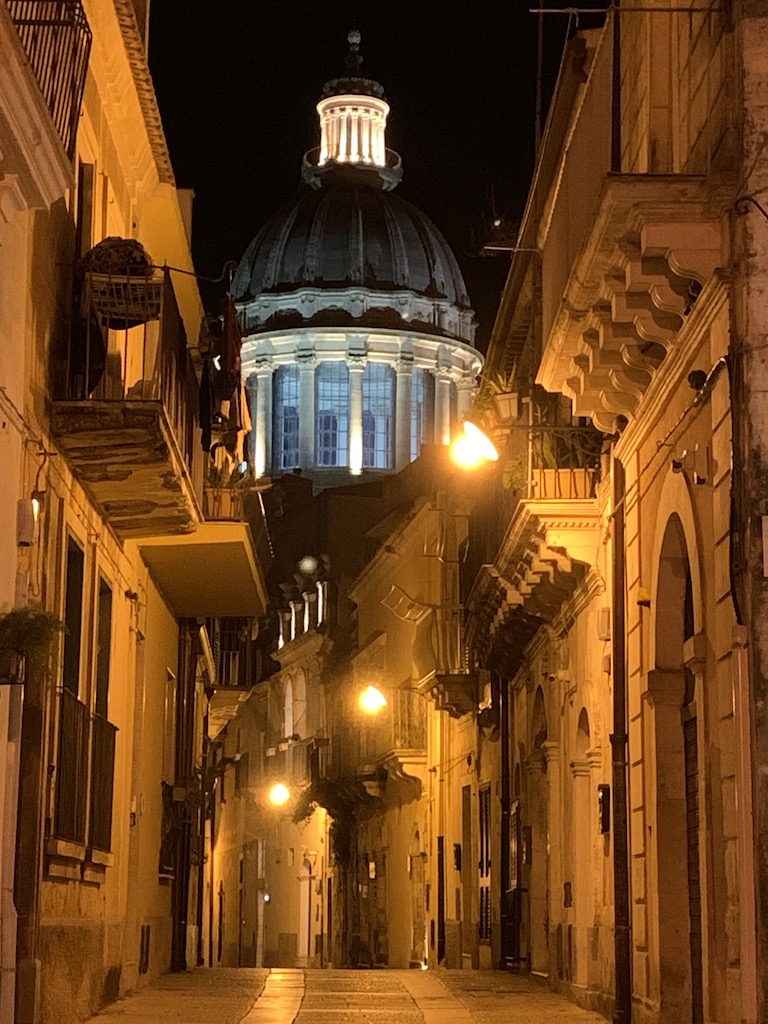 In unserem B&B angekommen, ruhten wir uns ein bischen aus und genossen eine ausgiebige Dusche. Ich war noch immer so begeistert von den vielen schönen Eindrücken, dass ich nicht aufhören konnte, davon zu schwärmen. Den Abend liessen wir wieder in dem gleichen kleinen Restaurant ausklingen. Da ich unbedingt noch ein paar Fotos von Ragusa Ibla bei Nacht schiessen wollte, wanderte ich noch bis zur Chiesa di Santa Lucia hinauf, von wo ich eine grandiose Aussicht hatte.