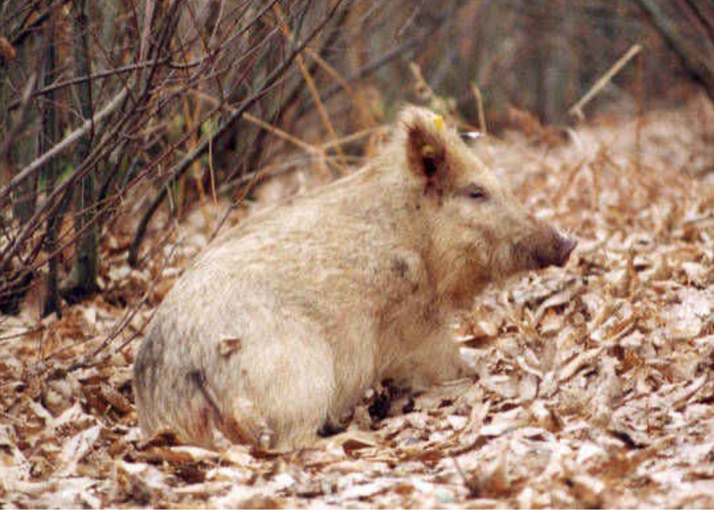 Relativ am Anfang, erblickten wir ein helles, fast weisses Wildschein, das neben dem Fluss auf Nahrungssuche war. Aber leider war ich nicht schnell genug, um es im Bild festzuhalten, bevor es in den dichten Hecken verschwand. Hier ein Foto, das ich im Internet auf der Seite cacciapassione.com gefunden habe.