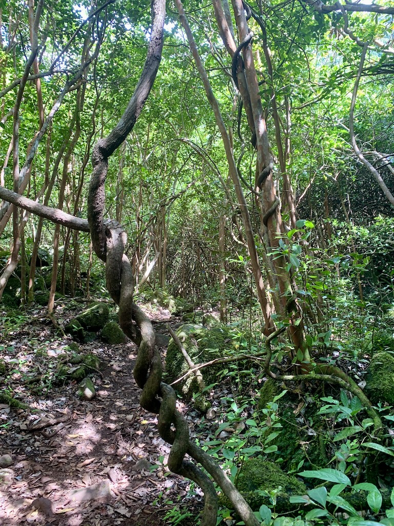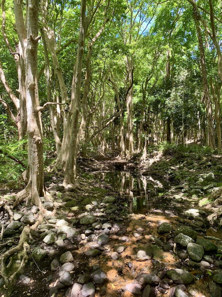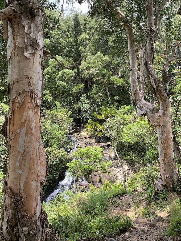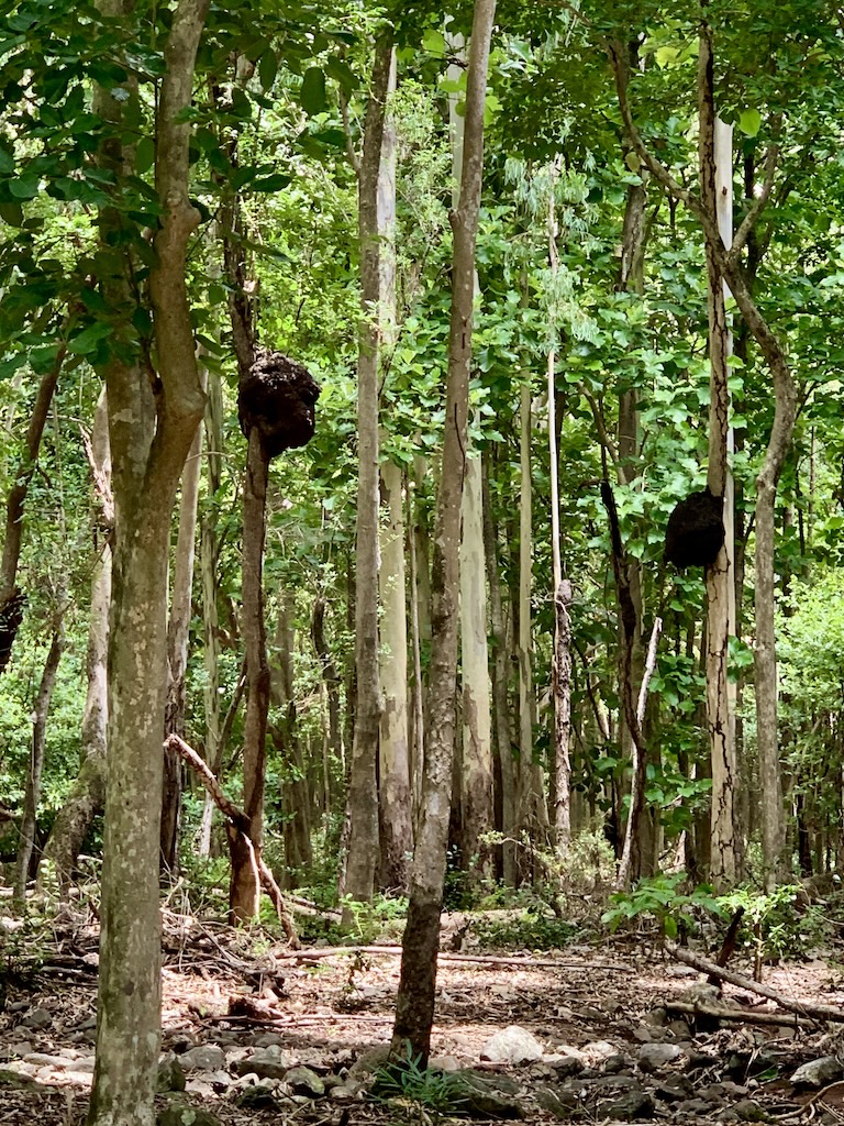 Mir gefiel dieser Platz richtig gut. Ich genoss diese tolle Vegetation und das Plätschern des Flusses. Aber ich merkte, dass Guy noch immer genervt und nicht in der Stimmung war um dies richtig zu geniessen. Also machten wir uns auf den Rückweg zum Auto. Auf diesem letzten Wegabschnitt kamen wir vermehrt an Bäumen mit grossen runden geschwürartigen Gebilden vorbei.