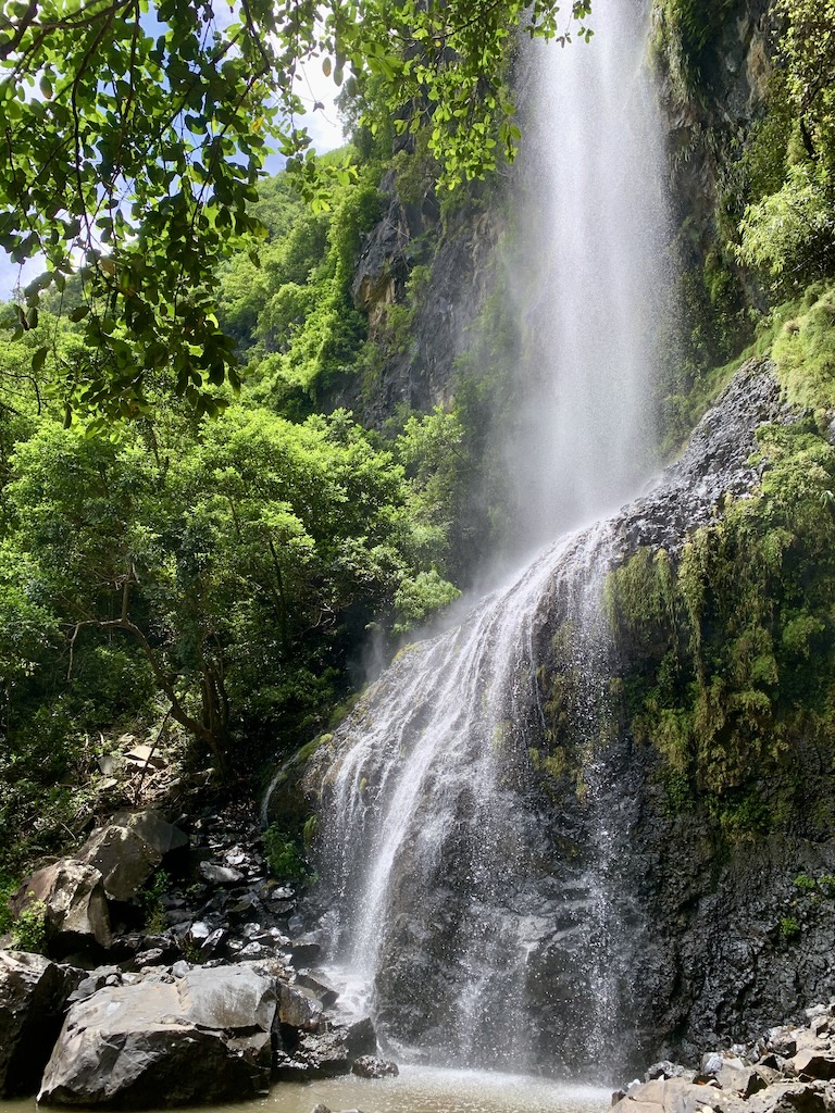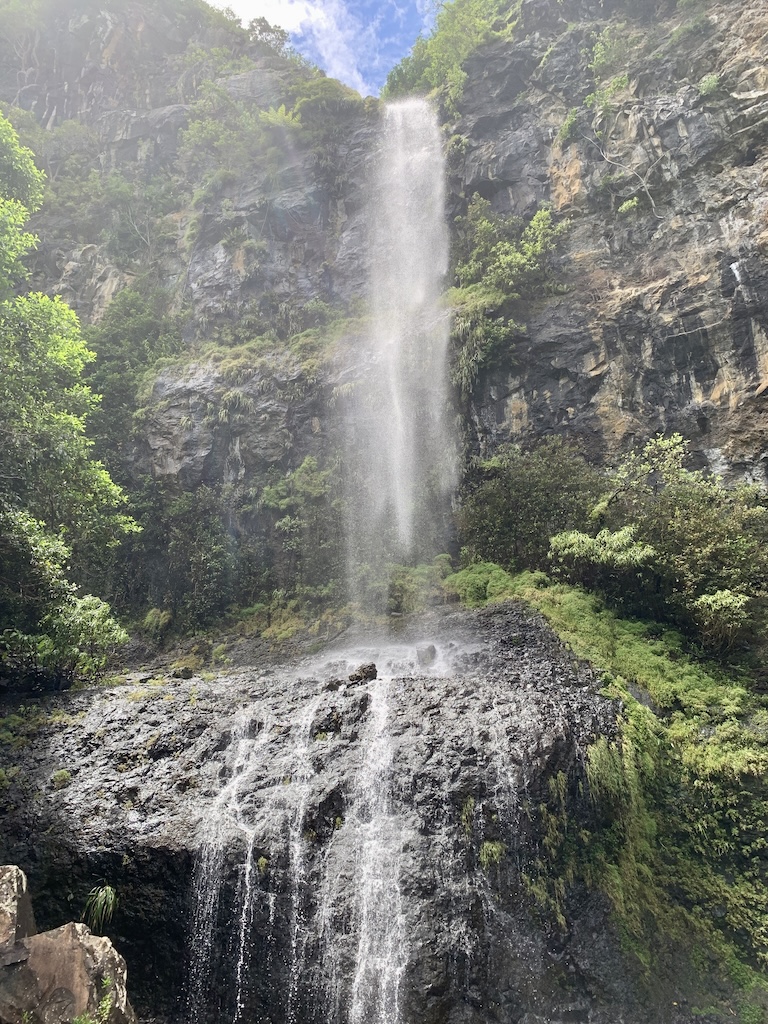 Der Wasserfall zog mich förmlich in seinen Bann. Ich konnte nicht anders, als mich darunterzustellen. Nach nur ein paar Sekunden war ich plitschnass, eine herrliche Erfrischung bei den hohen Temperaturen. Noch lieber hätte ich am Fusse des Wasserfalls ein erfrischendes Bad genommen, aber leider war das Wasser nicht tief genug und übersäht mit spitzen Steinen.